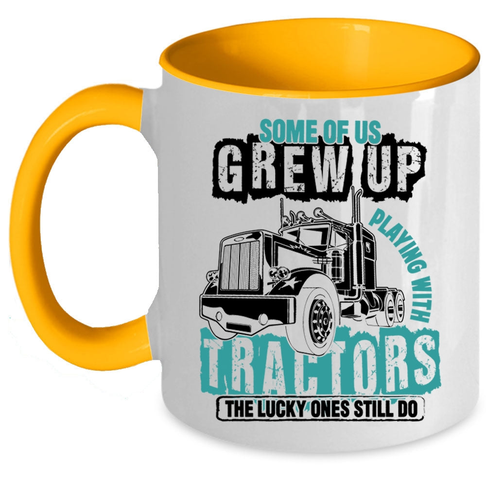 Cool Tractors Coffee Mug, Grew Up Playing With Tractors Accent Mug