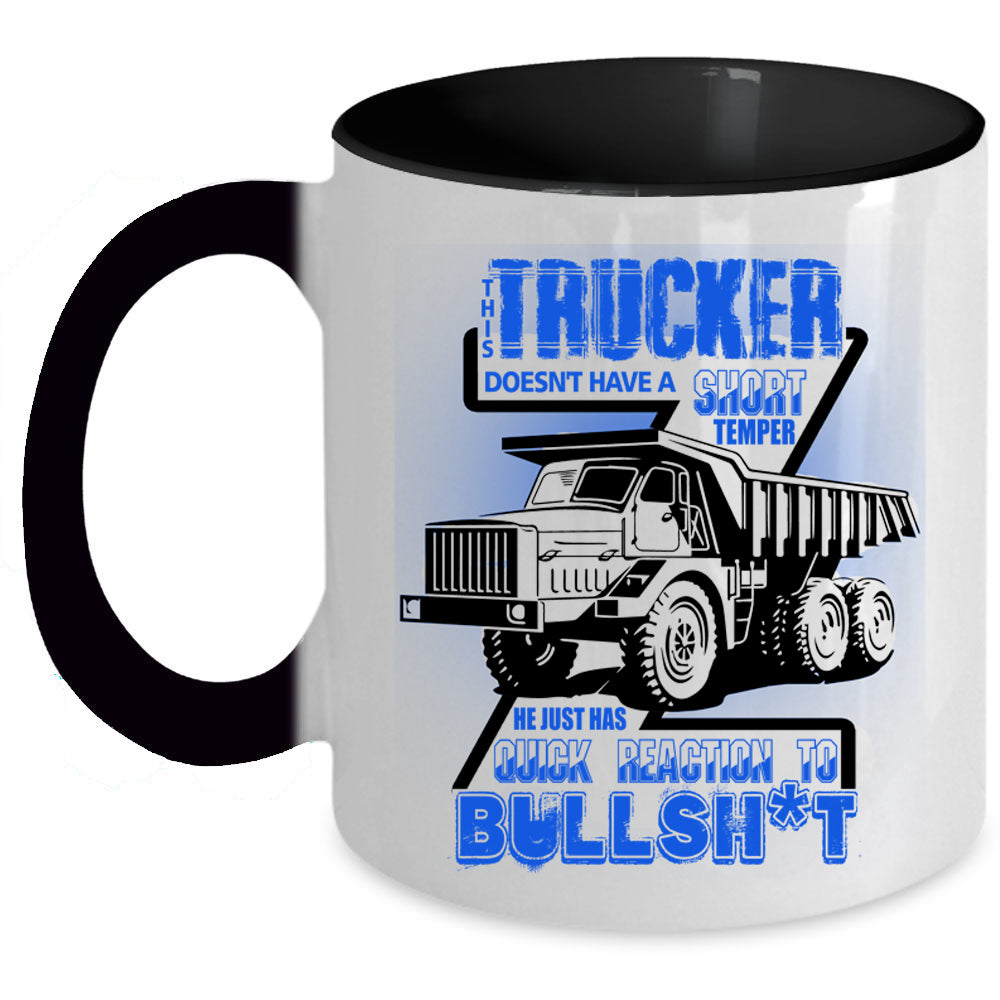 Cool Truck Coffee Mug, This Trucker Doesn't Have A Short Temper Accent Mug