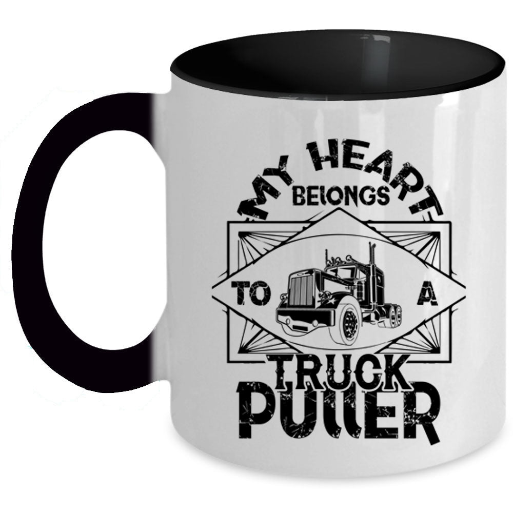 Cool Truck Puller Coffee Mug, My Heart Belongs To A Truck Puller Accent Mug