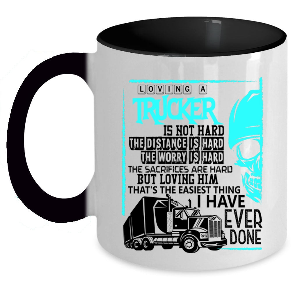 Cool Trucker Coffee Mug, Loving A Trucker Is Not Hard Accent Mug