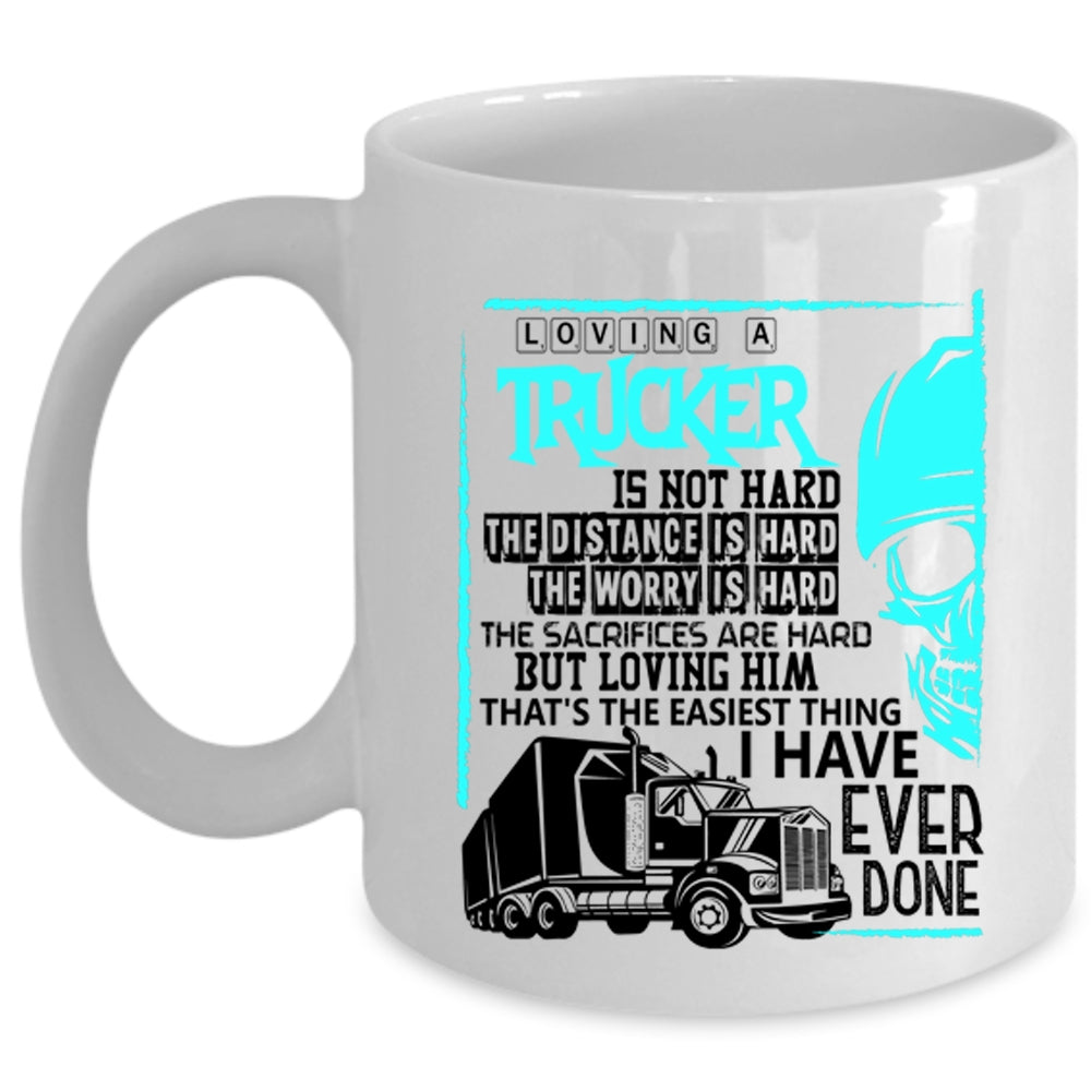 Cool Trucker Coffee Mug, Loving A Trucker Is Not Hard Cup
