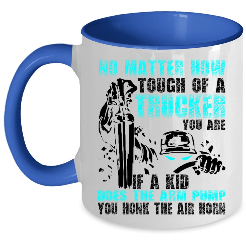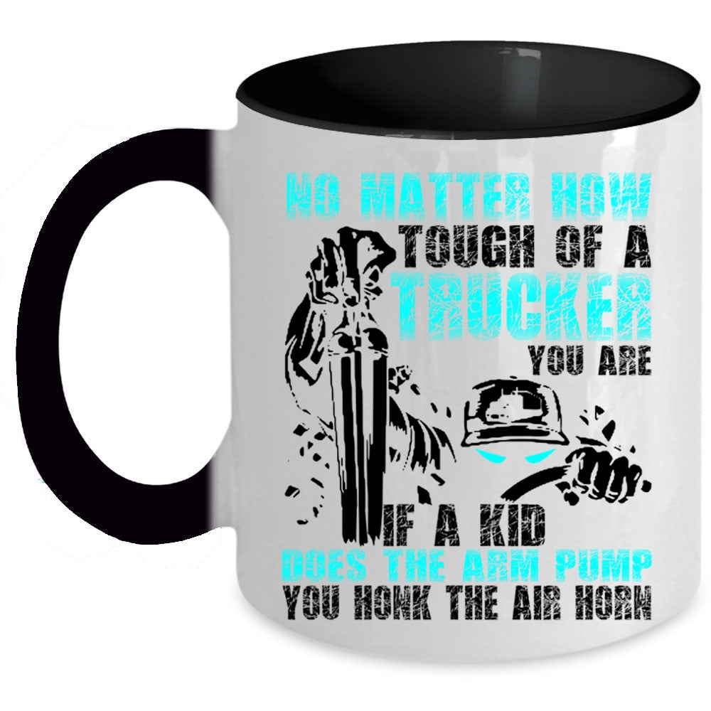 Cool Trucker Coffee Mug, No Matter How Tough Of A Trucker Accent Mug