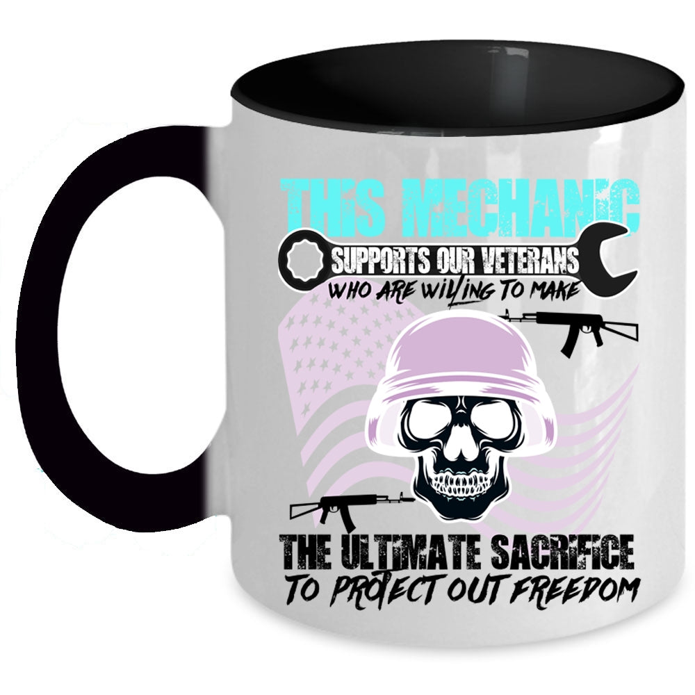 Cool Veteran Coffee Mug, This Mechanic Supports Our Veterans Accent Mug
