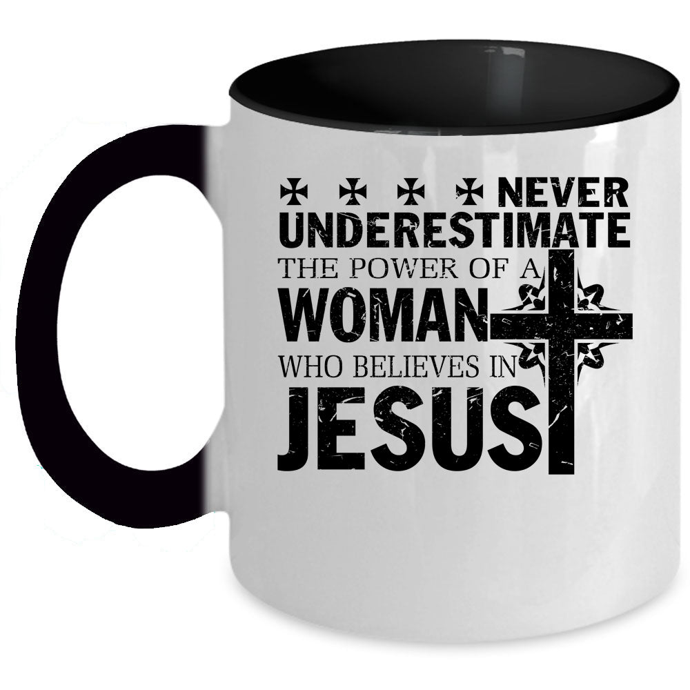 Cool Woman Coffee Mug, Woman Believes In Jesus Accent Mug