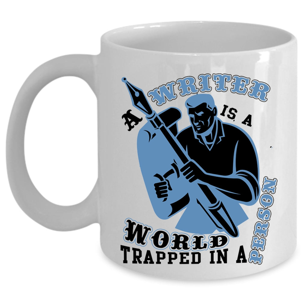 Cool Writer Coffee Mug, A Writer Is A World Trapped In A Person Cup