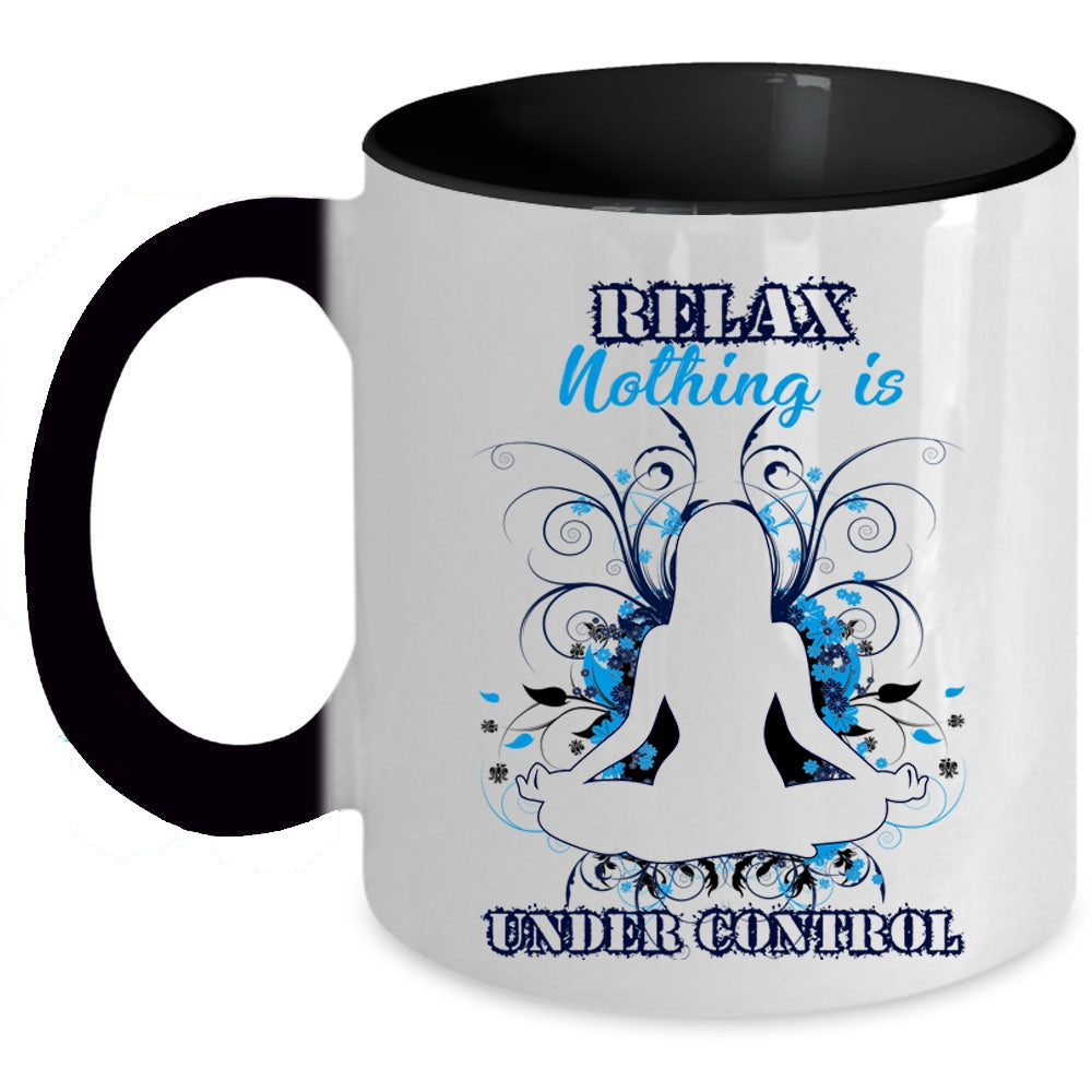 Cool Yoga Coffee Mug, Relax Nothing Is Under Control Accent Mug