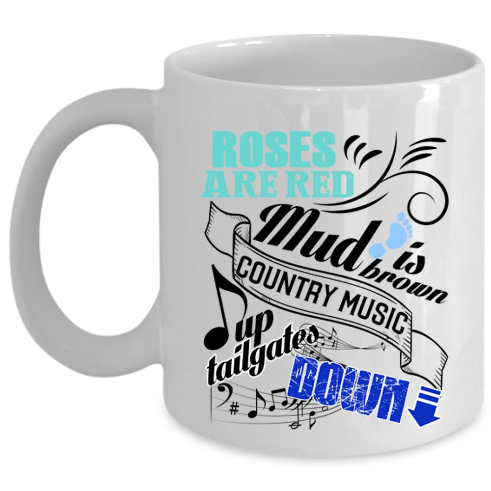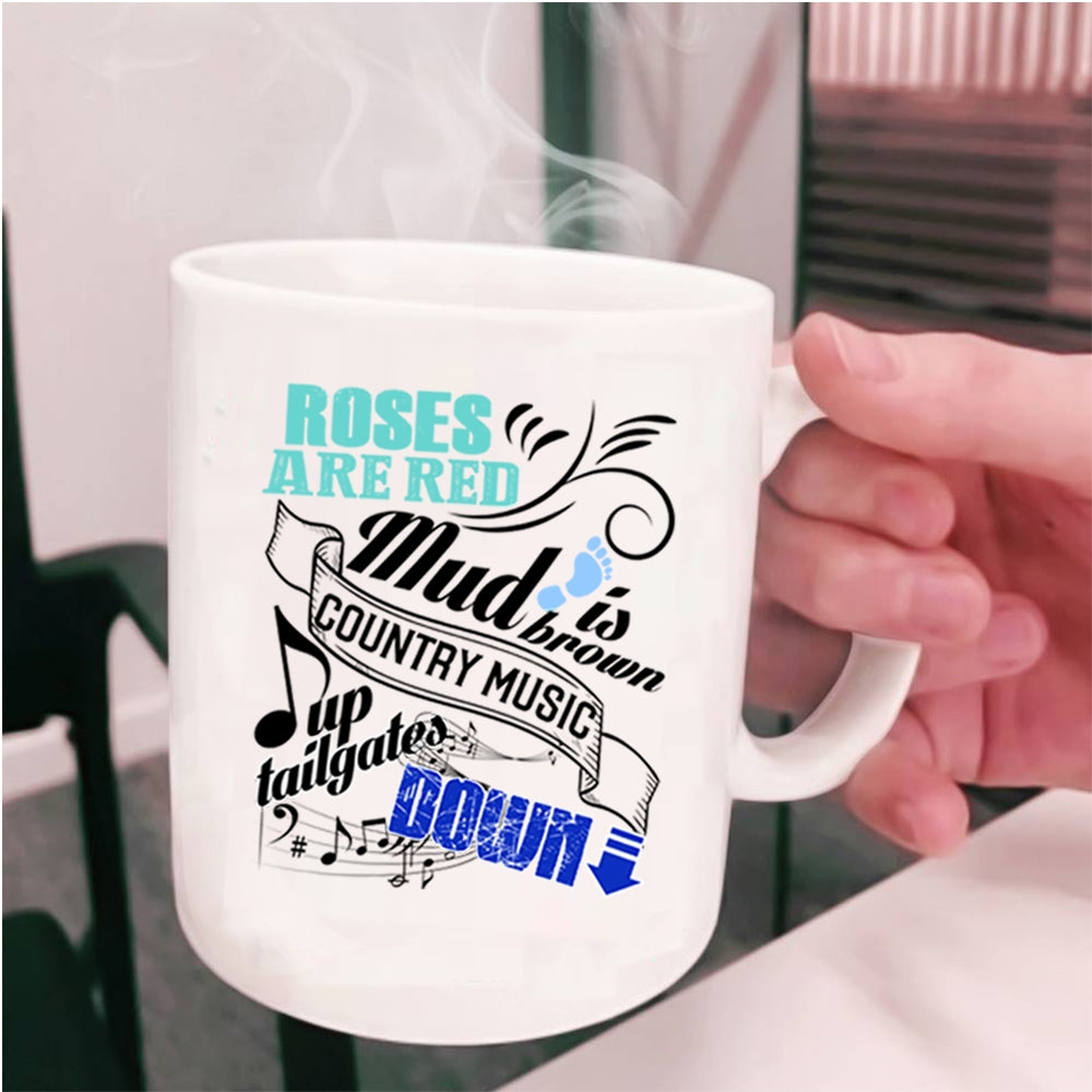 Country Music Up Tailgates Down Coffee Mug, Roses Are Red Cup