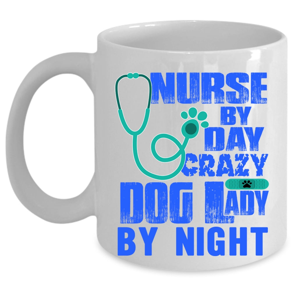 Crazy Dog Lady By Night Coffee Mug, Nurse By Day Cup