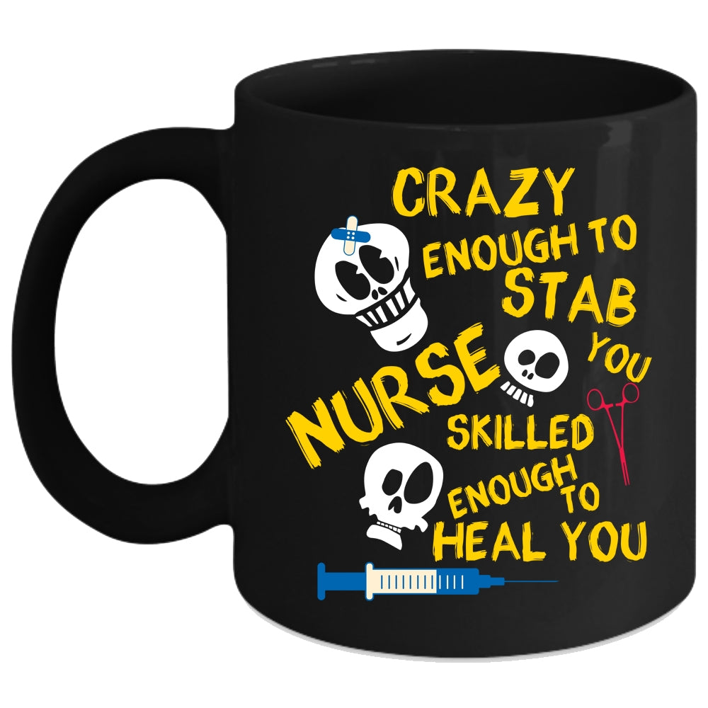 Crazy Enough To Stab You Nurse Coffee Mug, Cute Nurse Coffee Cup