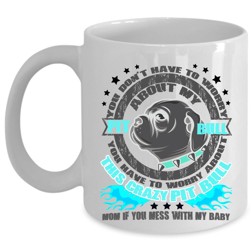 Crazy Pitbull Mom Coffee Mug, Don't Have To Worry About My Pit Bull Cup