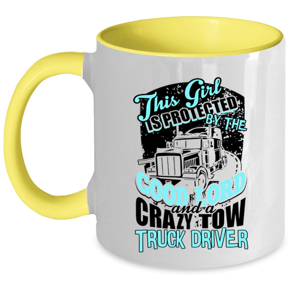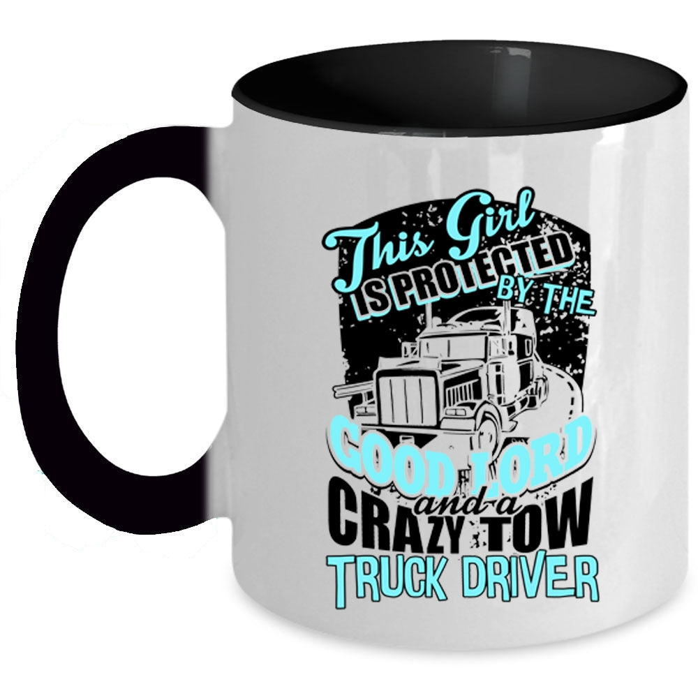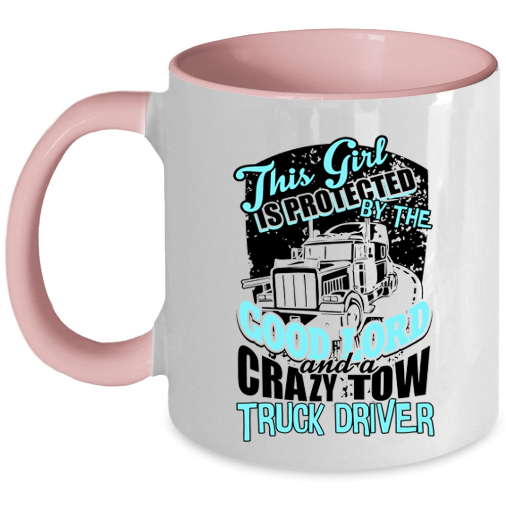 Crazy Trucker Coffee Mug, This Girl Is Protected By A Crazy Tow Truck Driver Accent Mug