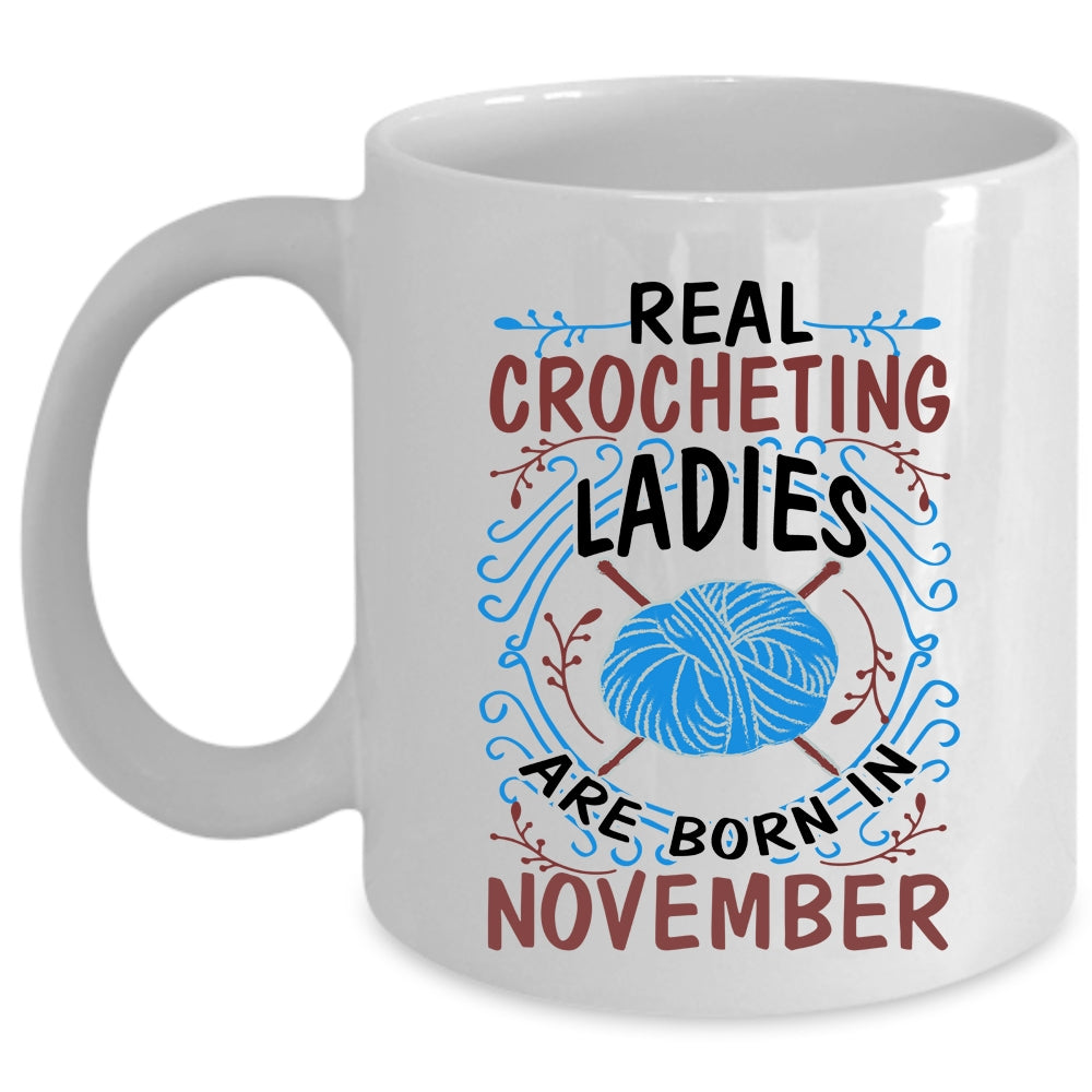 Crocheting Ladies Coffee Mug, Real Crocheting Ladies Are Born In November Cup