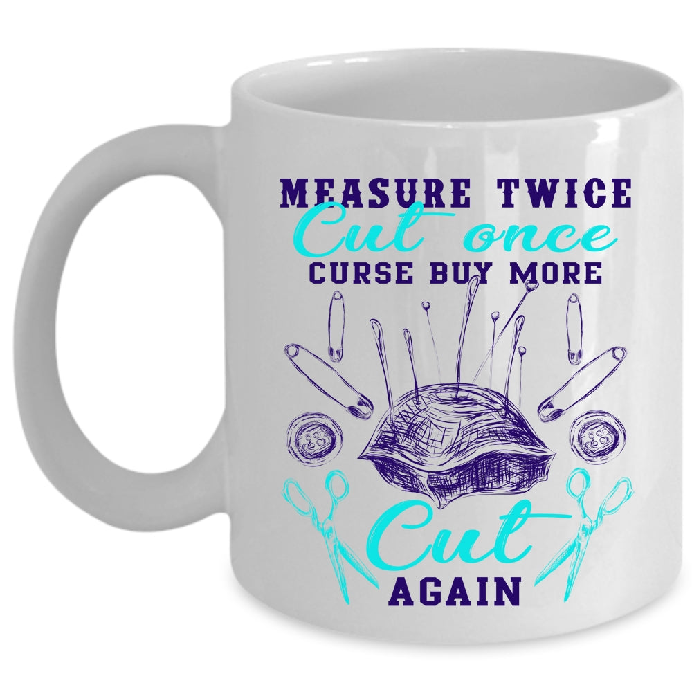 Curse Buy More Cut Again Coffee Mug, Measure Twice Cut Once Cup