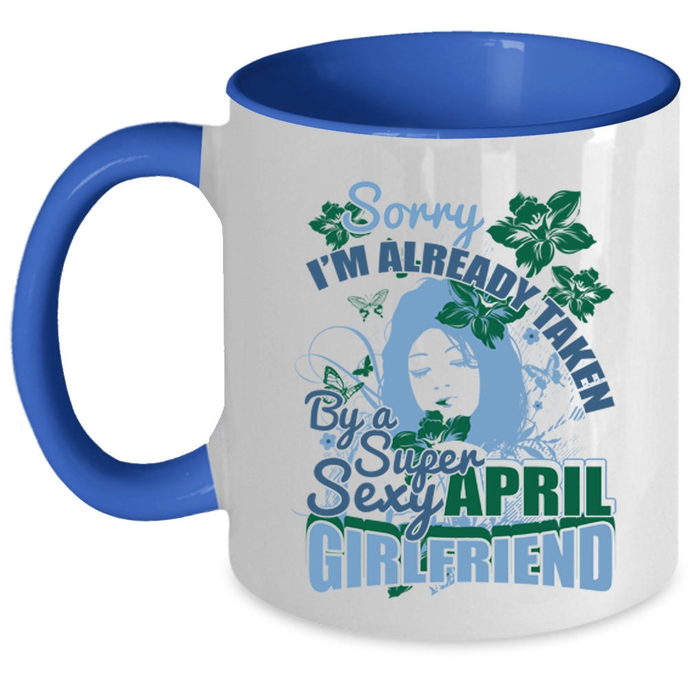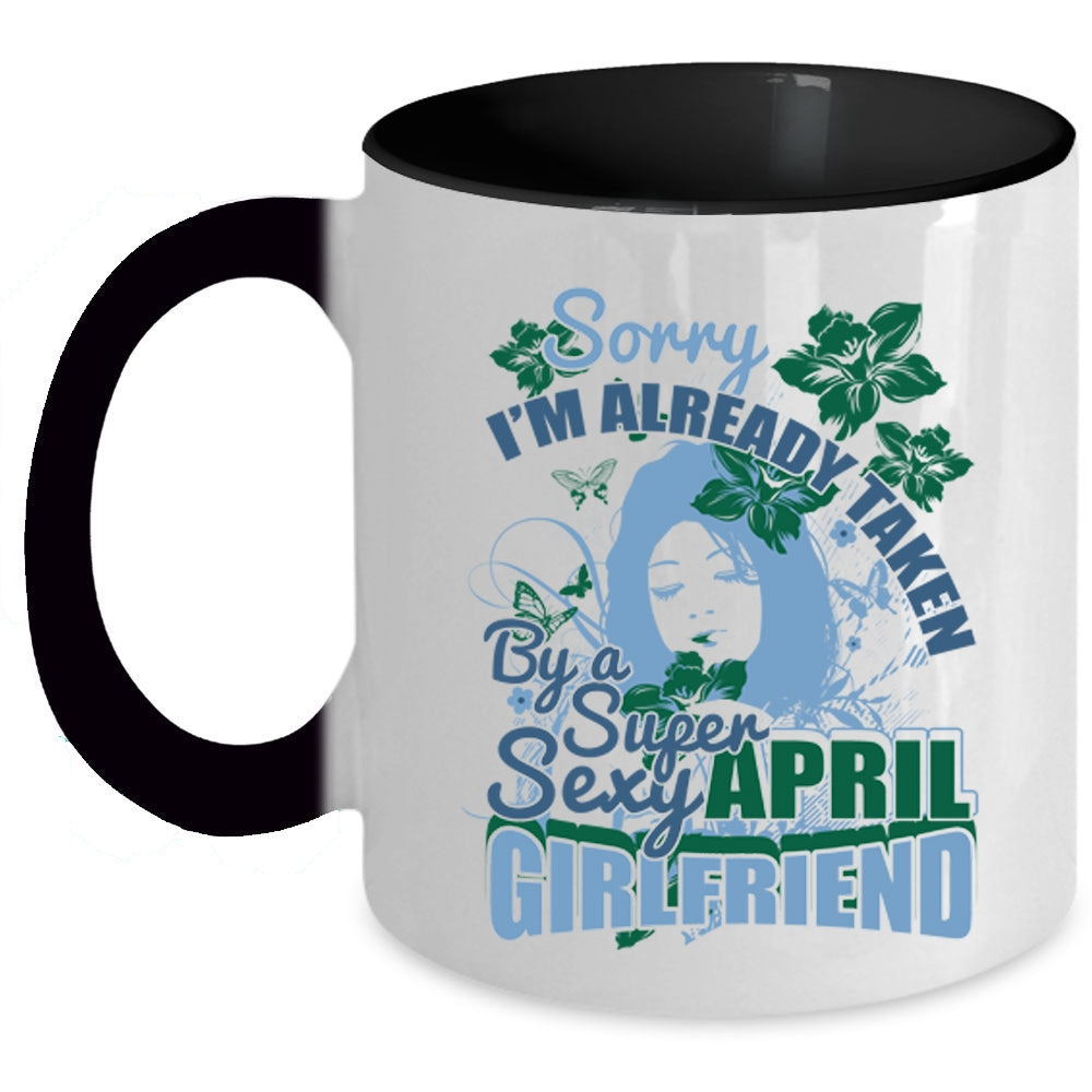 Cute April Girlfriend Coffee Mug, I'm Already Taken By An April Girlfriend Accent Mug