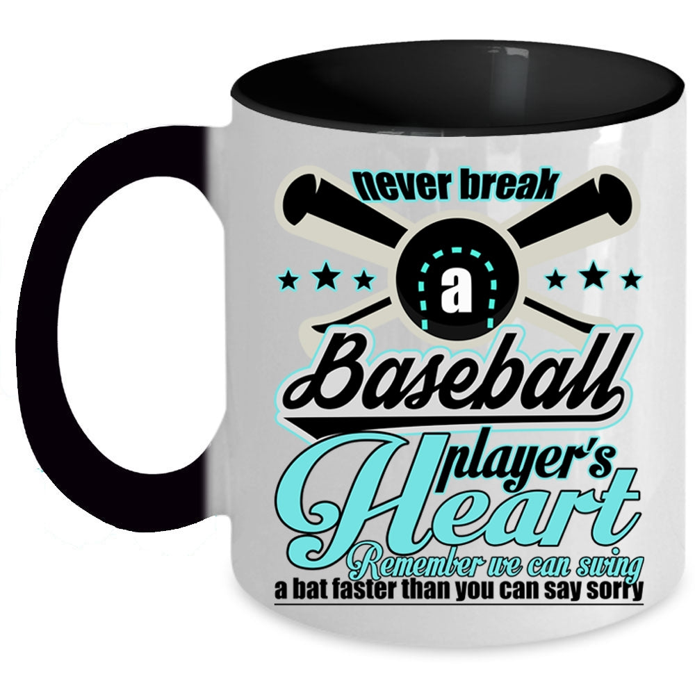 Cute Baseball Player Coffee Mug, Never Break A Baseball Player's Heart Accent Mug