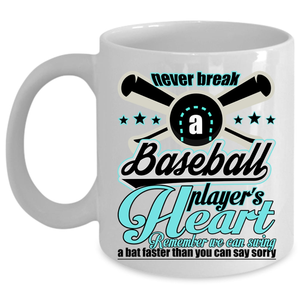 Cute Baseball Player Coffee Mug, Never Break A Baseball Player's Heart Cup