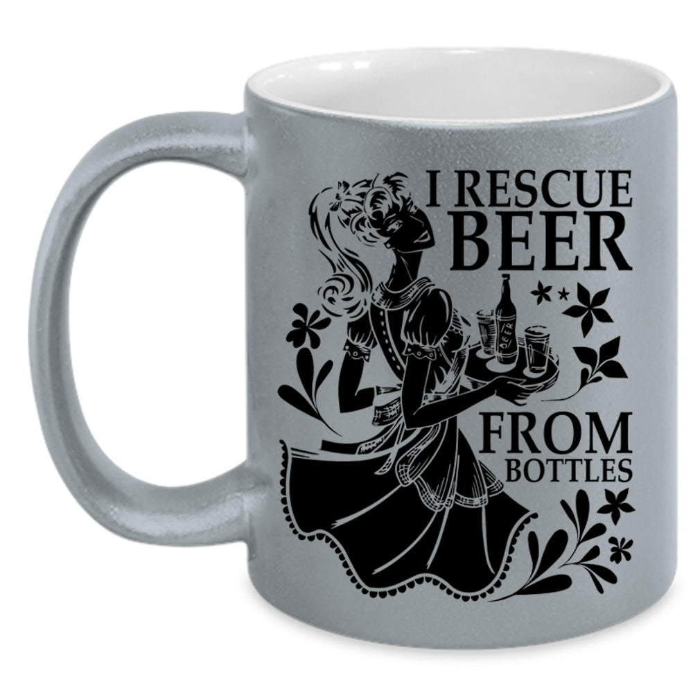 Cute Beer Drinker Coffee Mug, I Rescue Beer From Bottles Accent Mug