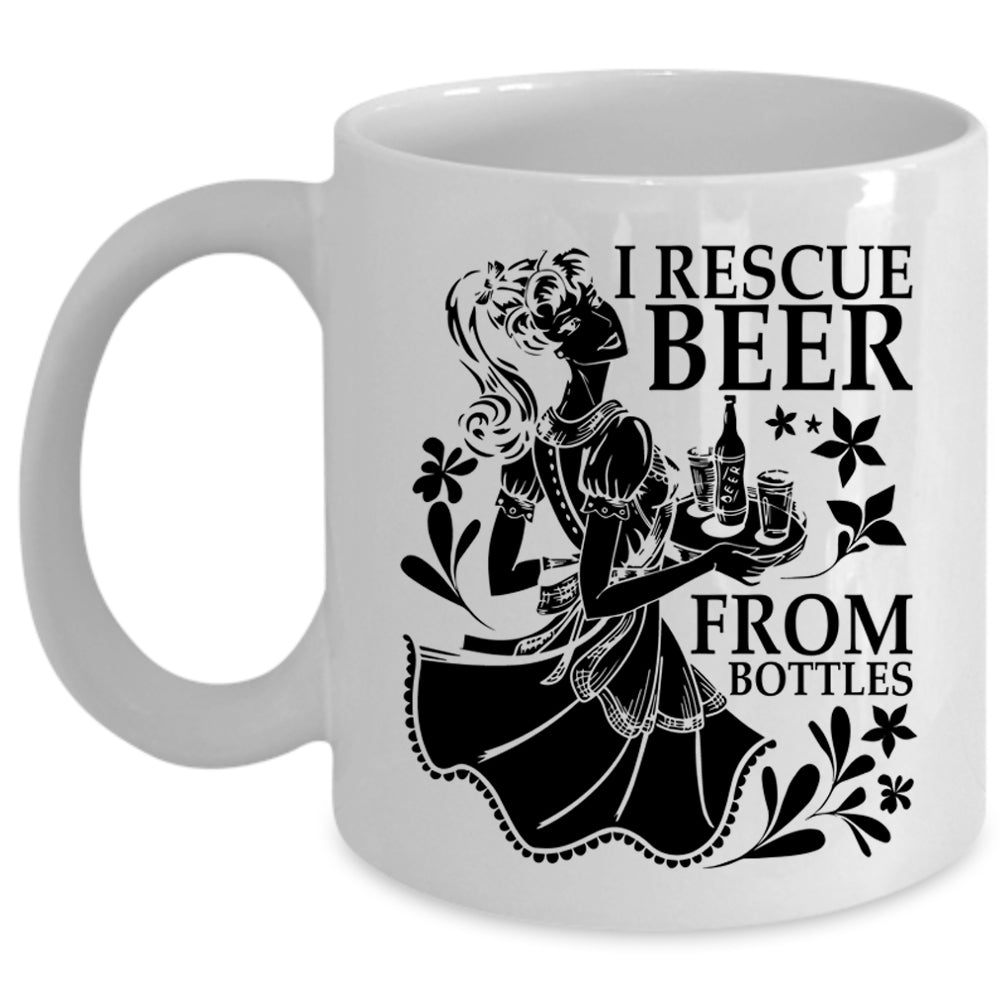 Cute Beer Drinker Coffee Mug, I Rescue Beer From Bottles Cup