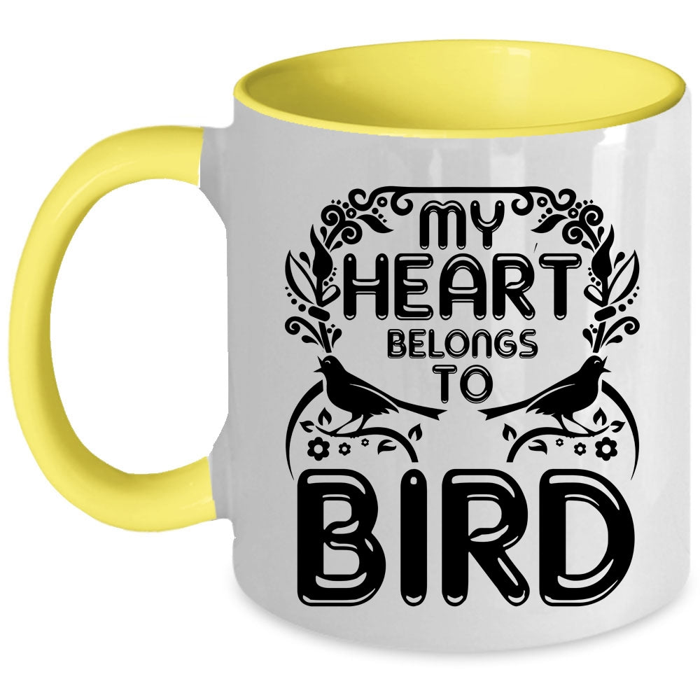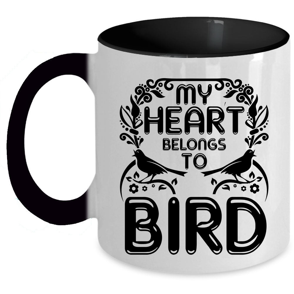 Cute Birds Coffee Mug, My Heart Belongs To Bird Accent Mug
