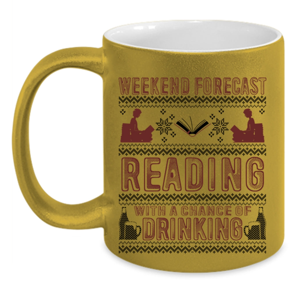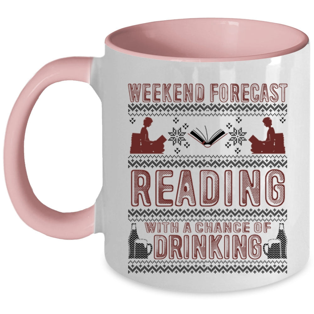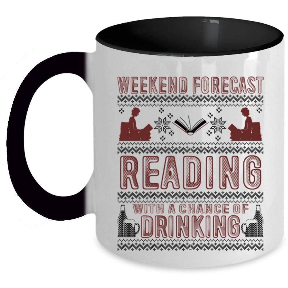Cute Book Reader Coffee Mug, Weekend Forecast Reading Accent Mug