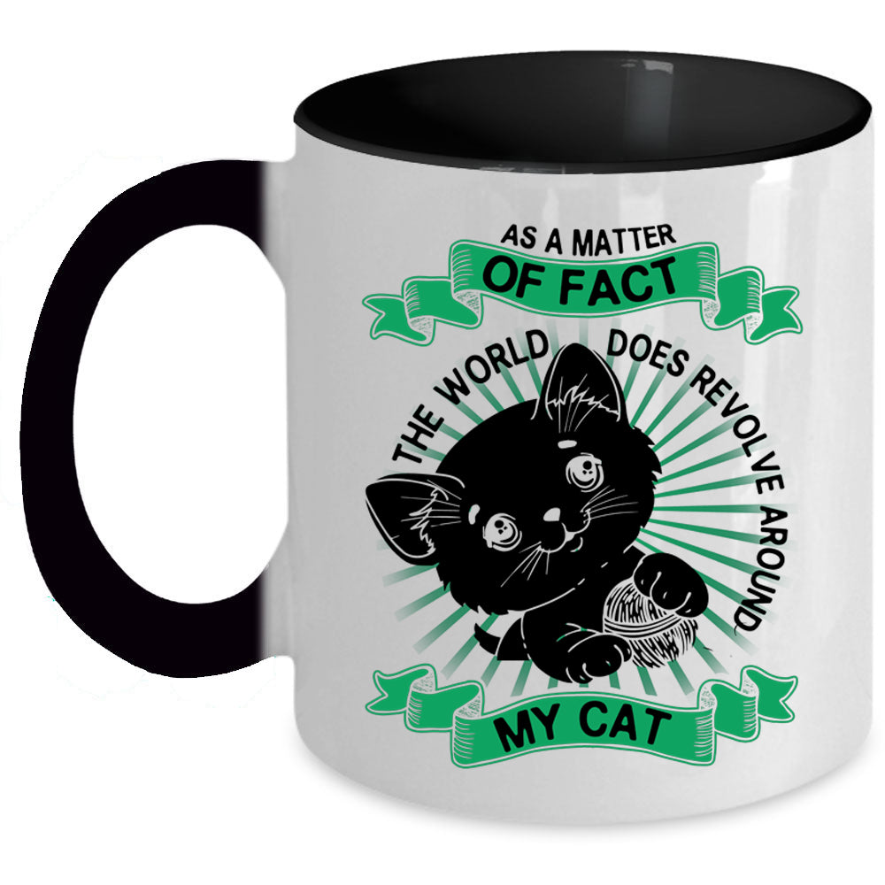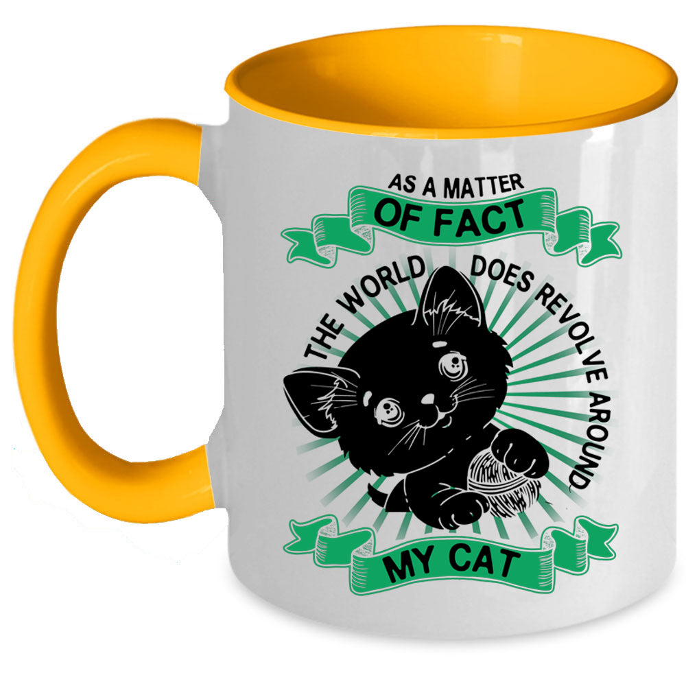 Cute Cats Coffee Mug, The World Does Revolve Around My Cat Accent Mug