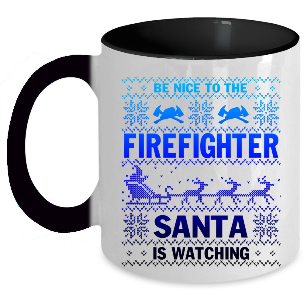 Cute Coffee Mug, Be Nice To The Firefighter Santa Is Watching Accent Mug