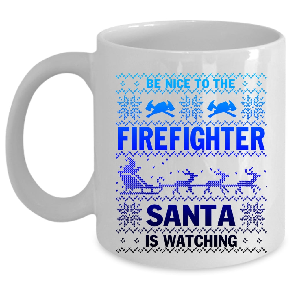 Cute Coffee Mug, Be Nice To The Firefighter Santa Is Watching Cup