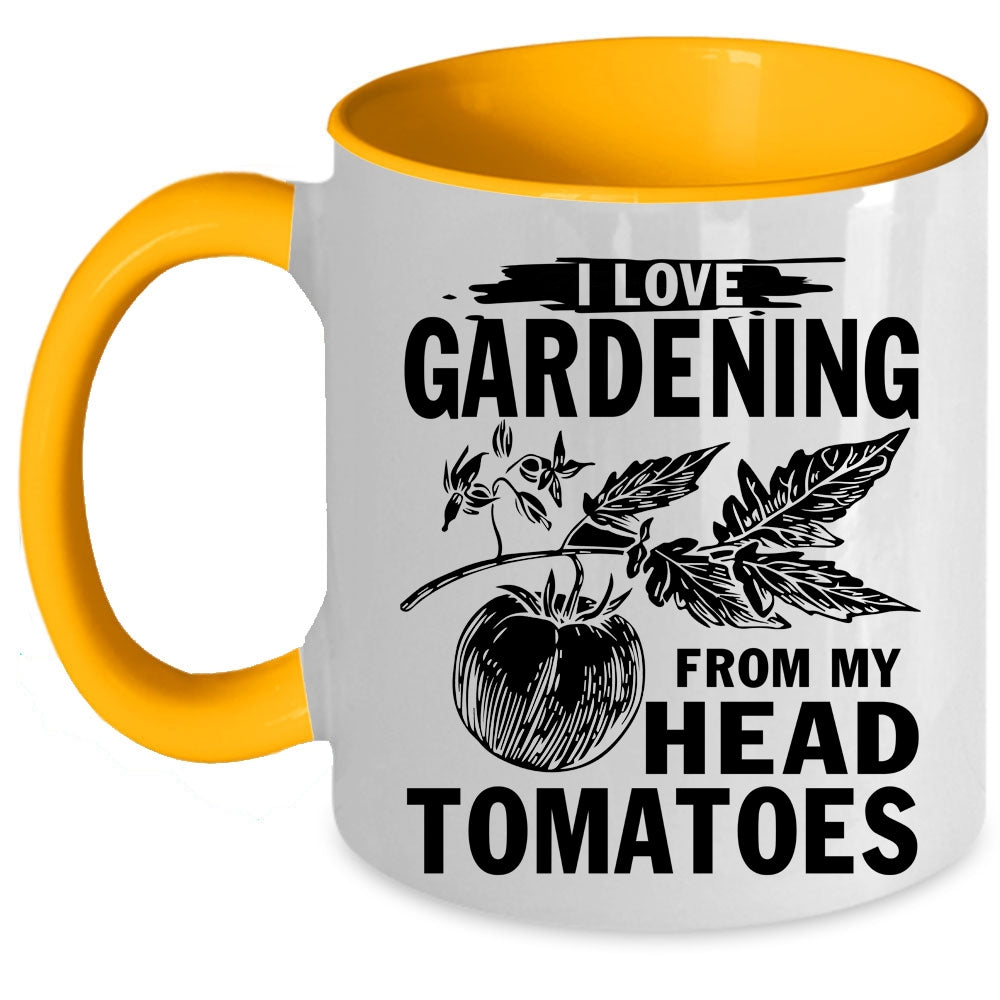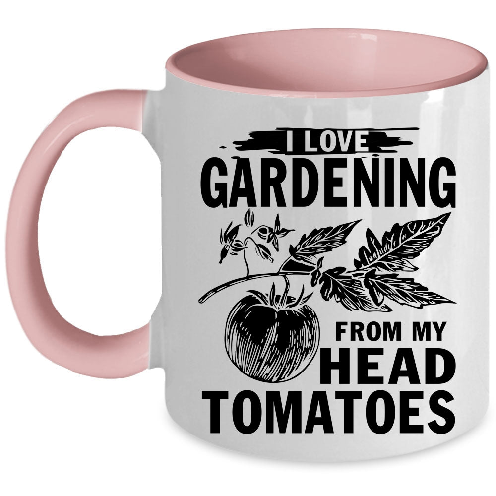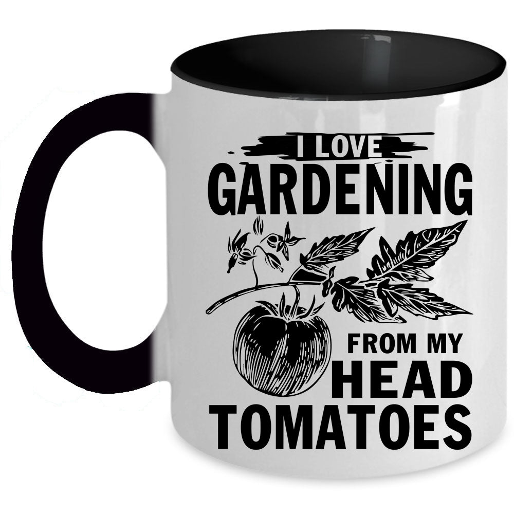Cute Coffee Mug, I Love Gardening From My Head Tomatoes Accent Mug