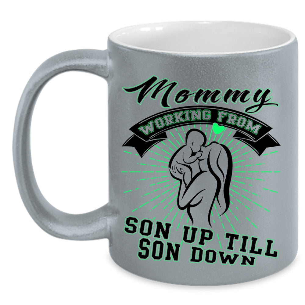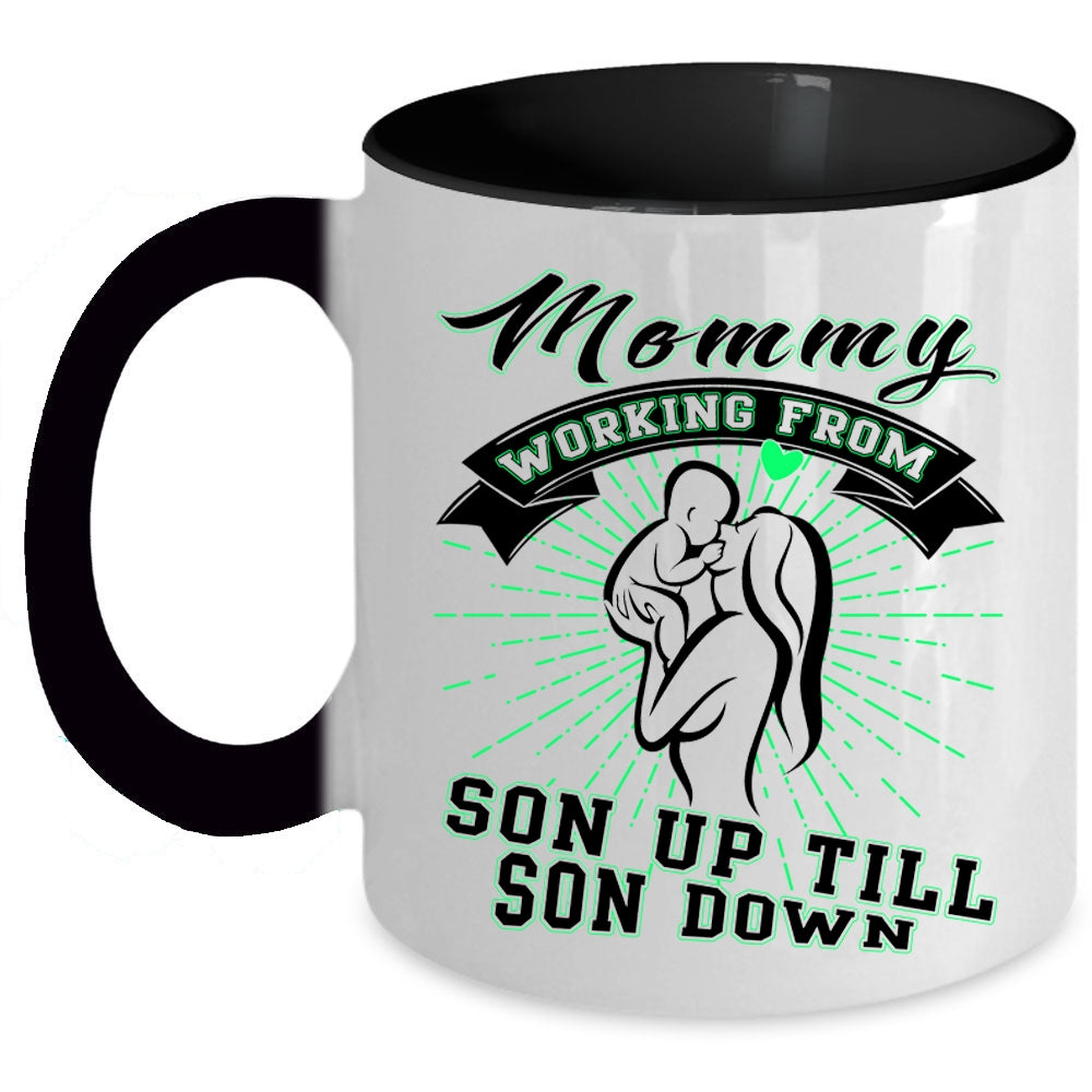 Cute Coffee Mug, Mommy Working From Son Up Till Son Down Accent Mug