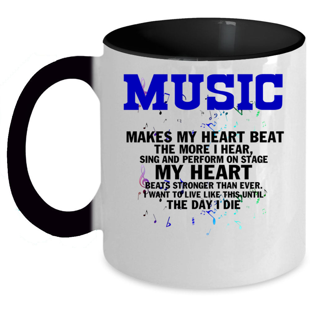 Cute Coffee Mug, Music Makes My Heart Beat The More I Hear Accent Mug