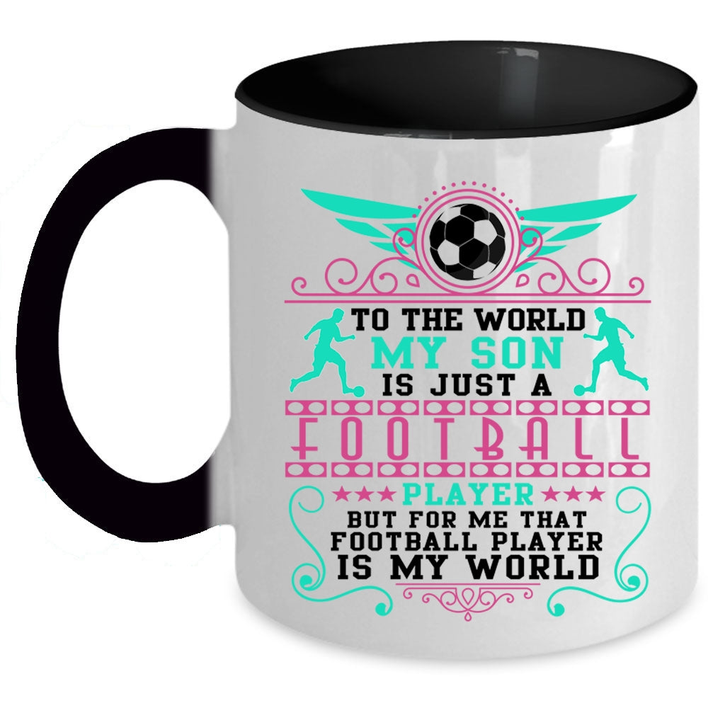 Cute Coffee Mug, To The World My Son Is Just A Football Player Accent Mug