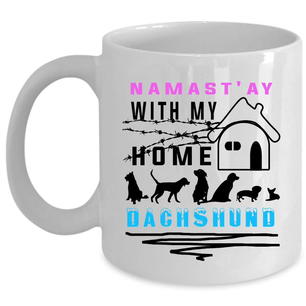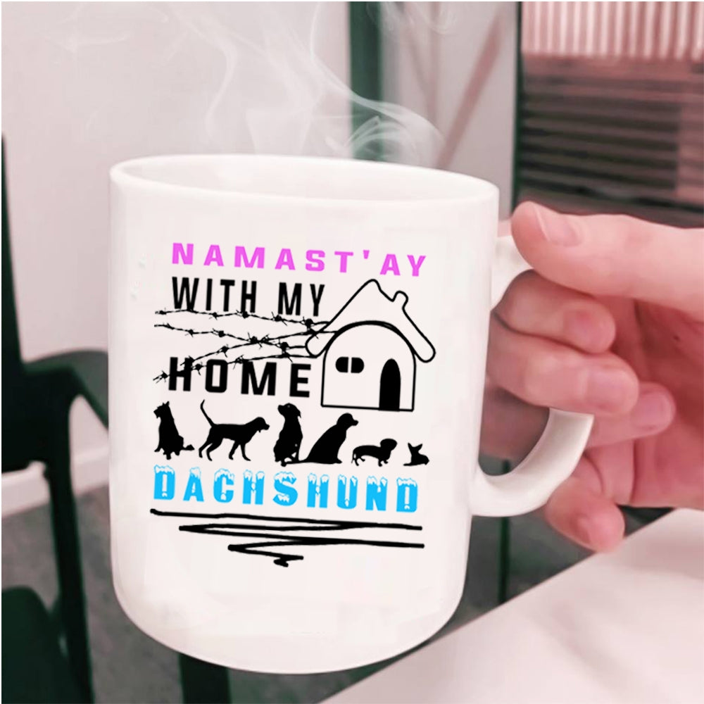 Cute Dachshund Lovers Coffee Mug, Namast' Ay With My Home Dachshund Cup