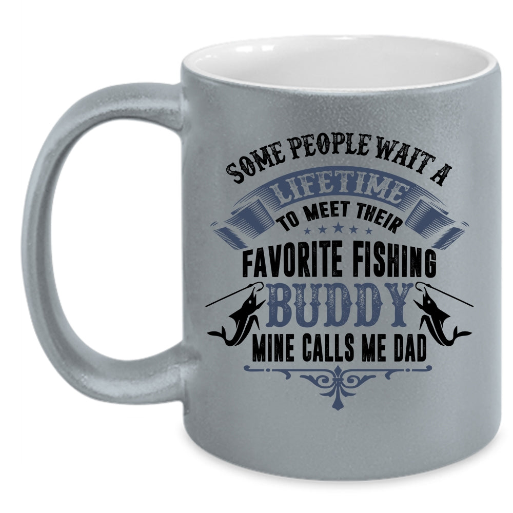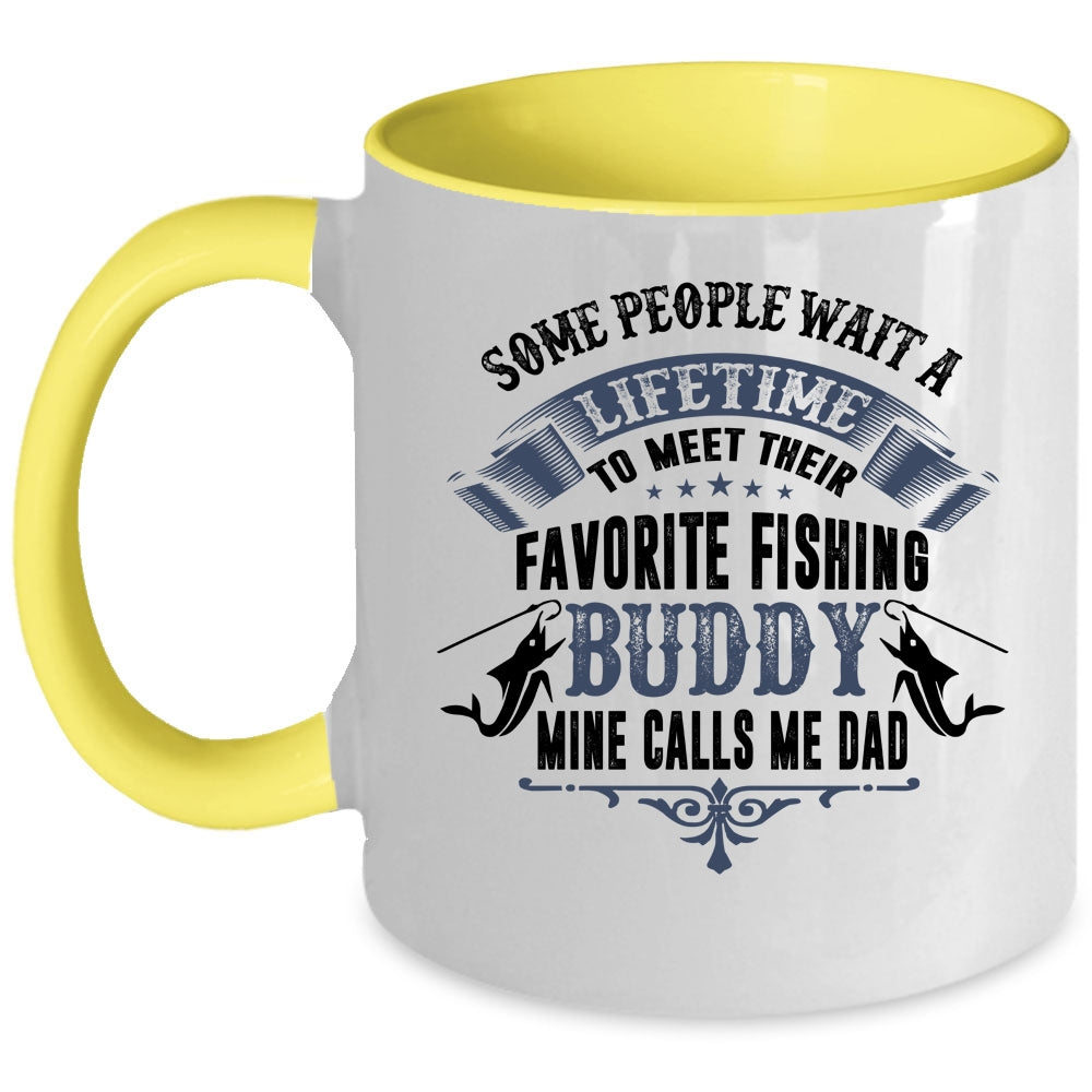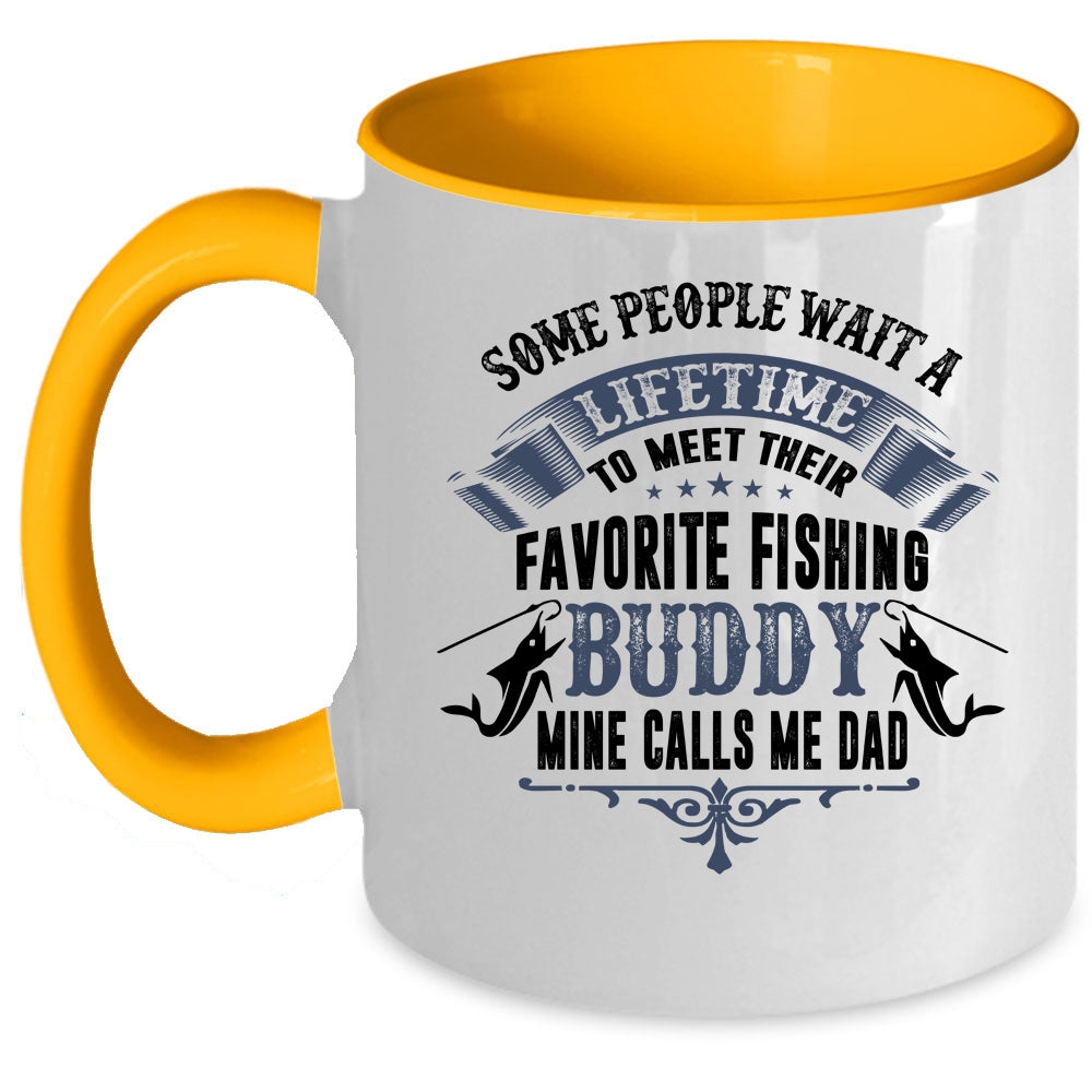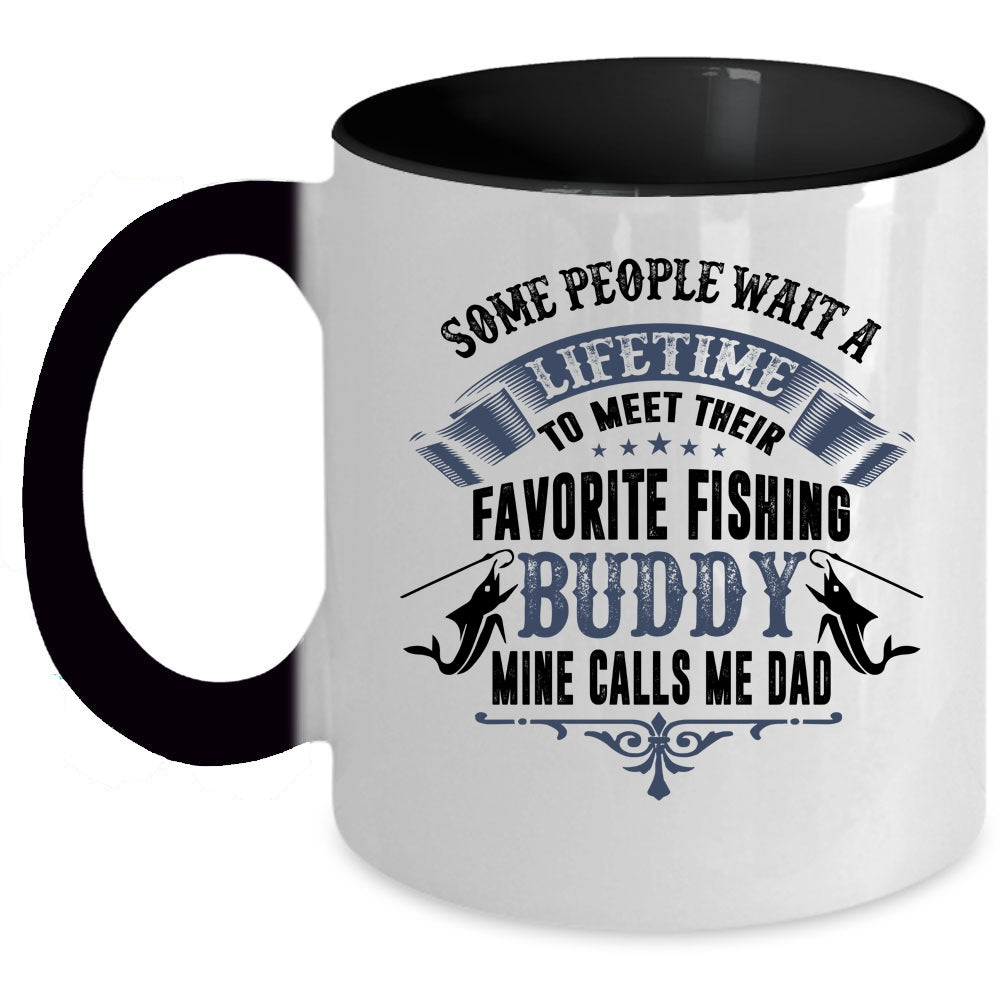 Cute Dad Coffee Mug, My Favorite Fishing Buddy Calls Me Dad Accent Mug