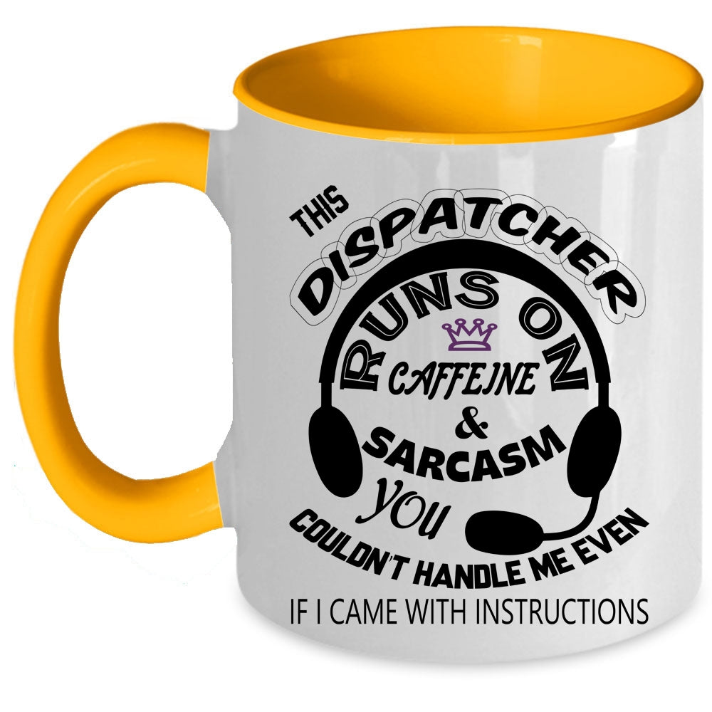 Cute Dispatchers Coffee Mug, This Dispatcher Runs On Caffeine Accent Mug