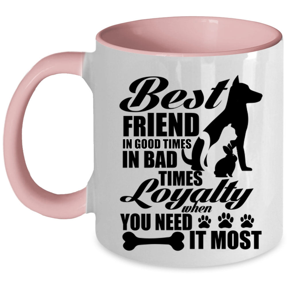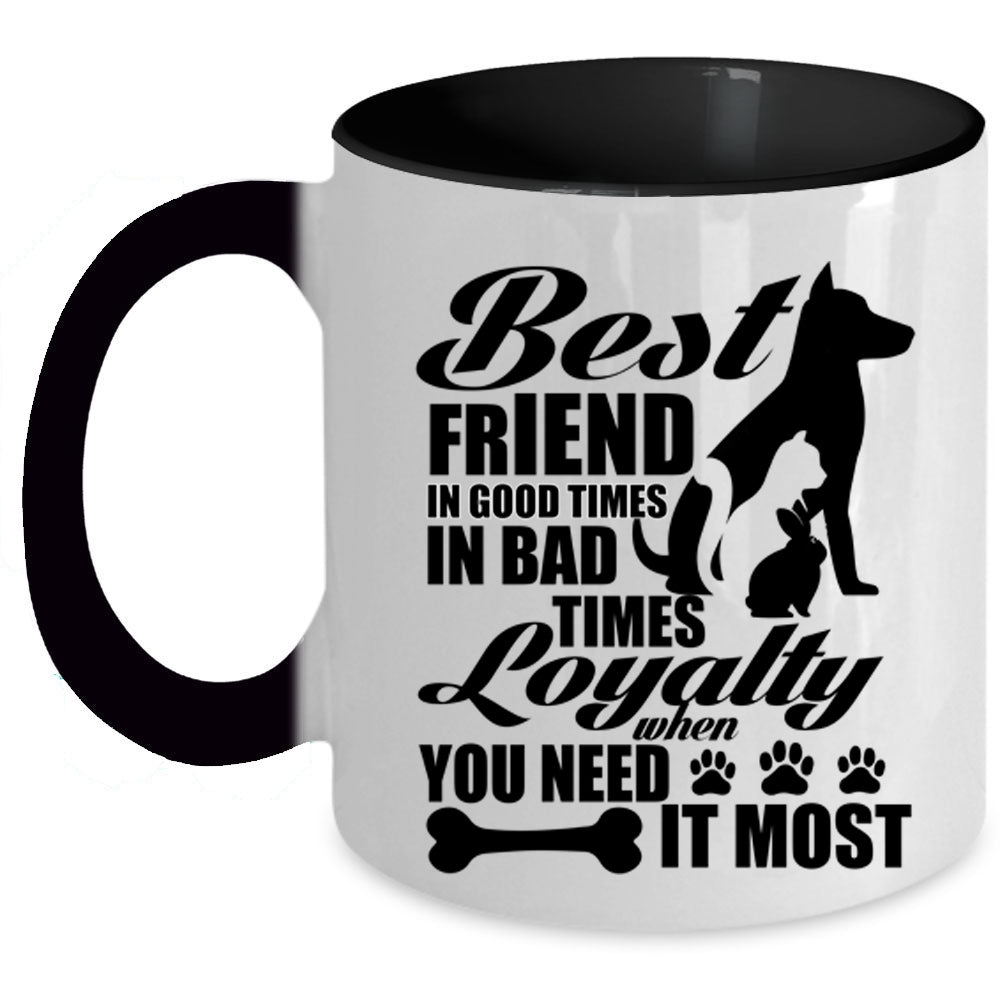 Cute Dog Lover Coffee Mug, Best Friend In Good Times Accent Mug