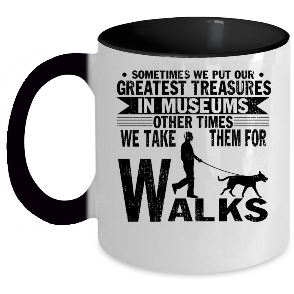 Cute Dog Lovers Coffee Mug, We Take Them For Walks Accent Mug