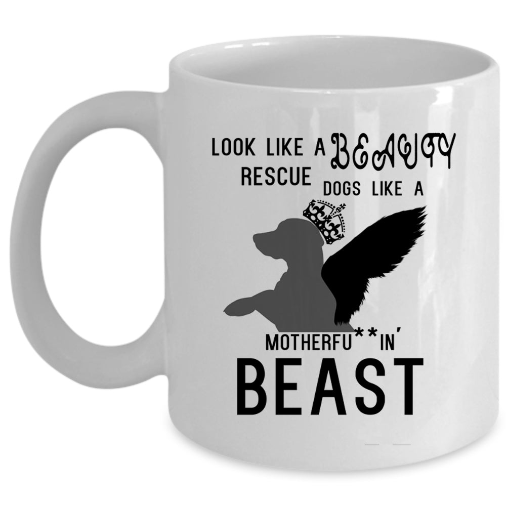 Cute Dogs Coffee Mug, Look Like A Beauty Rescue Dogs Like A Beast Cup