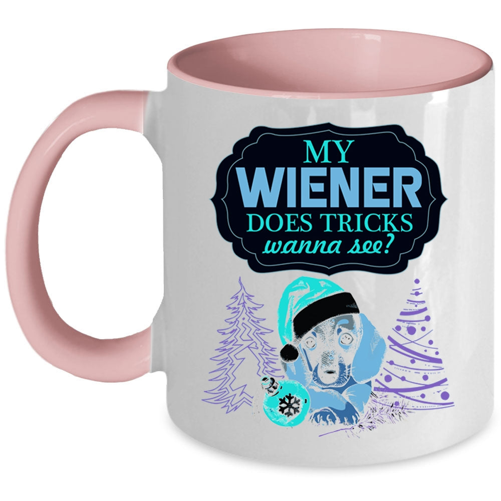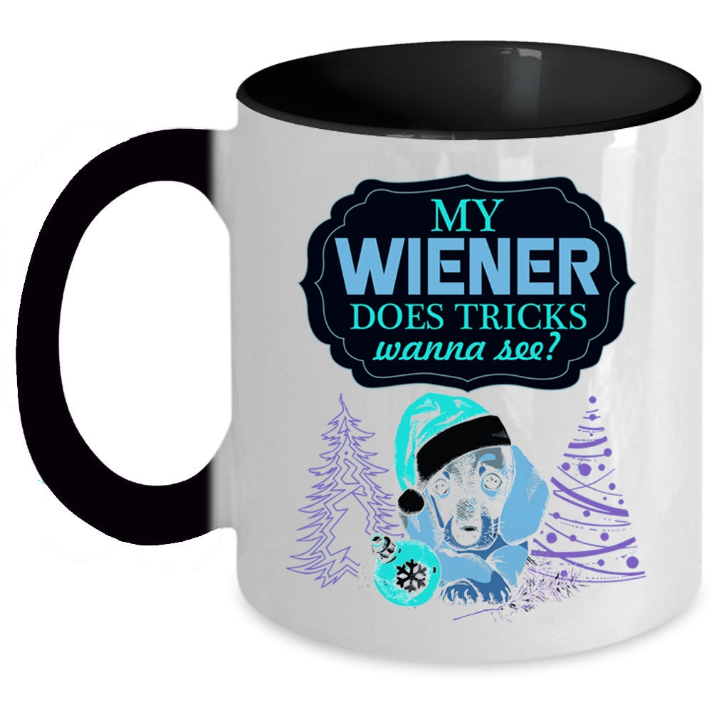 Cute Dogs Coffee Mug, My Wiener Does Tricks Wanna See Accent Mug