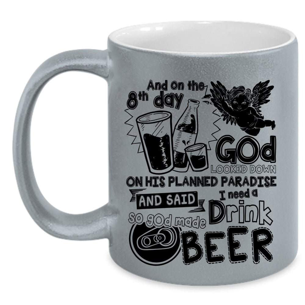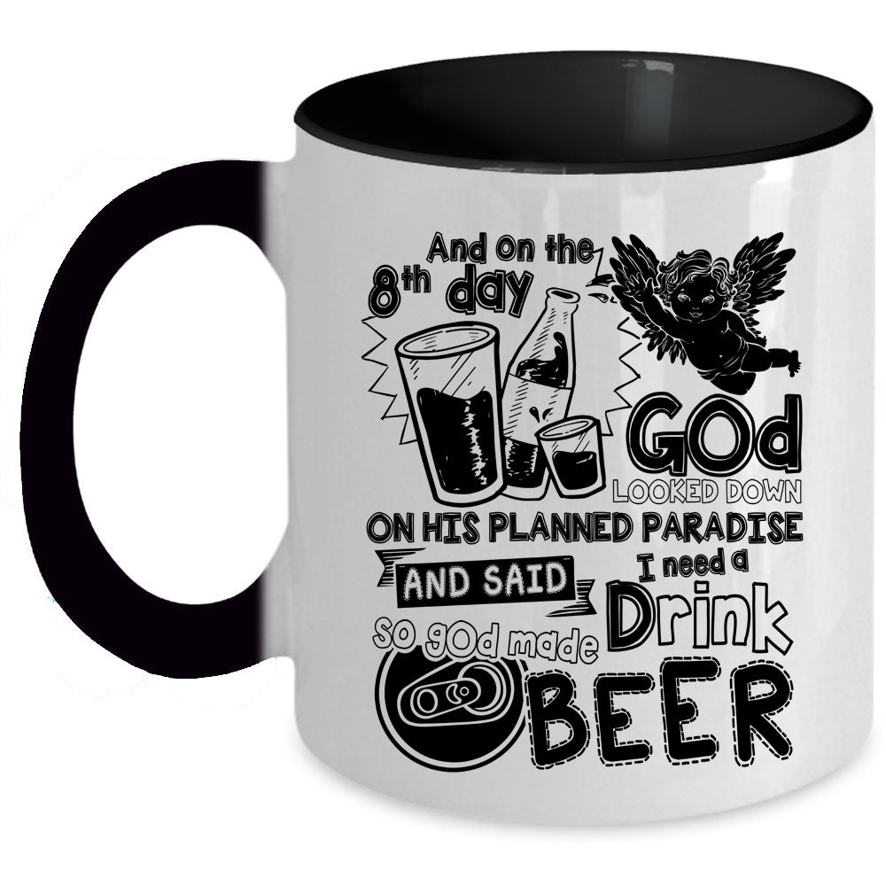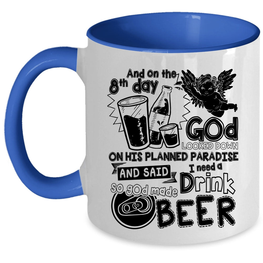 Cute Drink Beer Coffee Mug, On The 8th Day God Made Beer Accent Mug