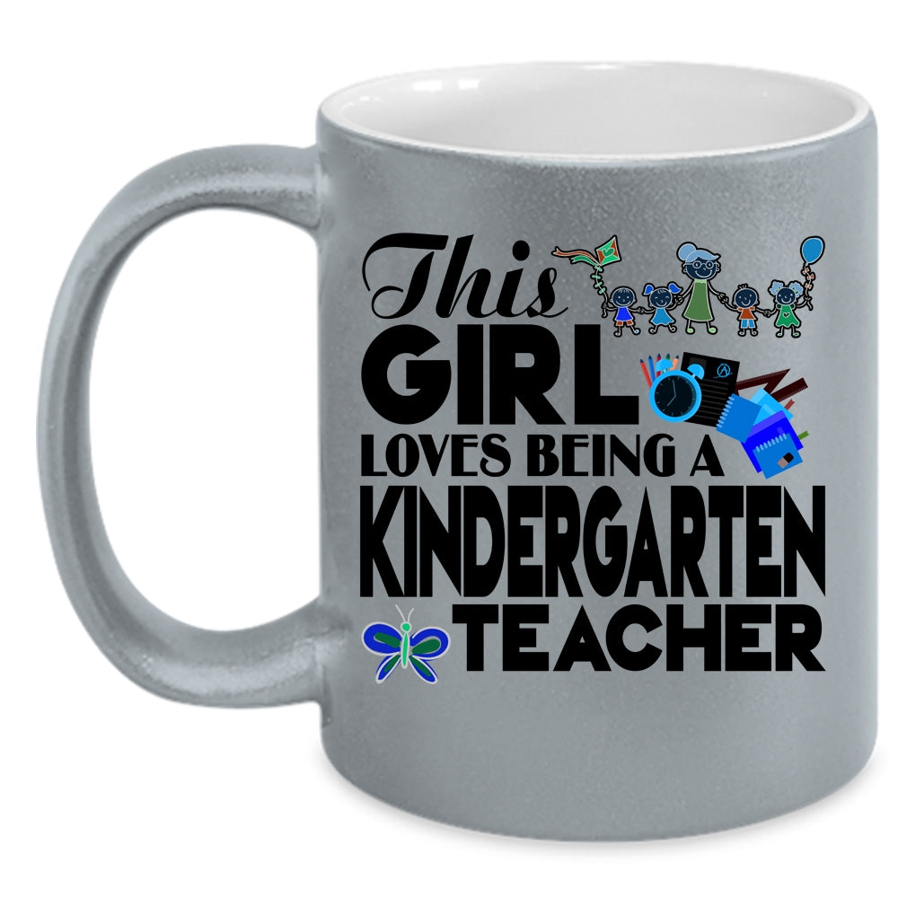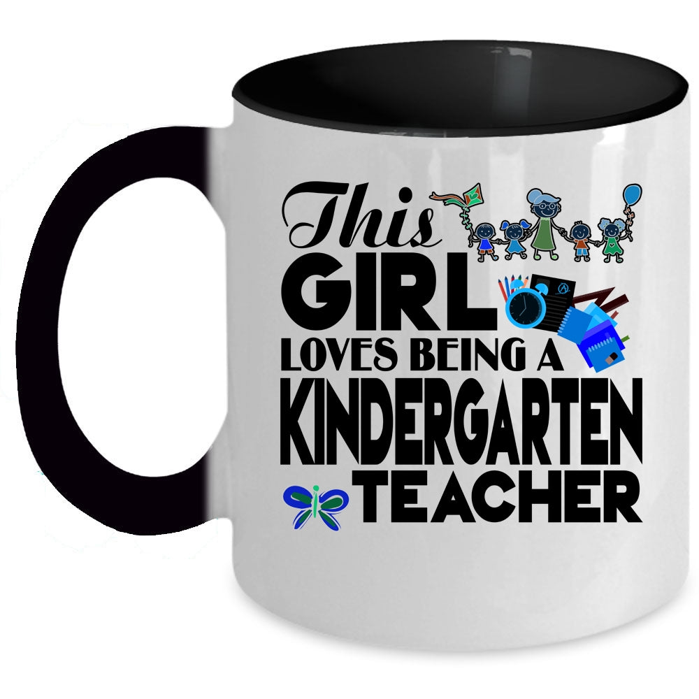 Cute English Teacher Coffee Mug, This Girl Loves Being A Kindergarten Teacher Accent Mug