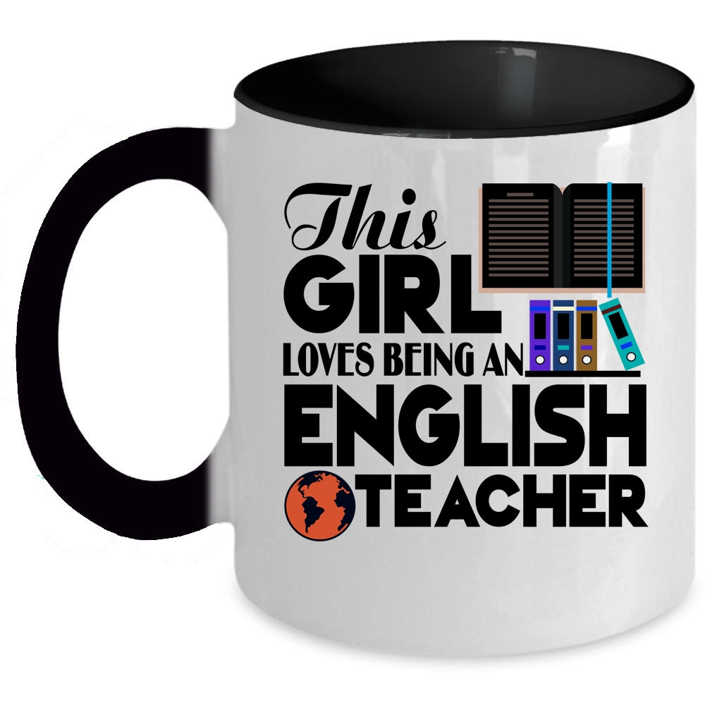 Cute English Teacher Coffee Mug, This Girl Loves Being An English Teacher Accent Mug