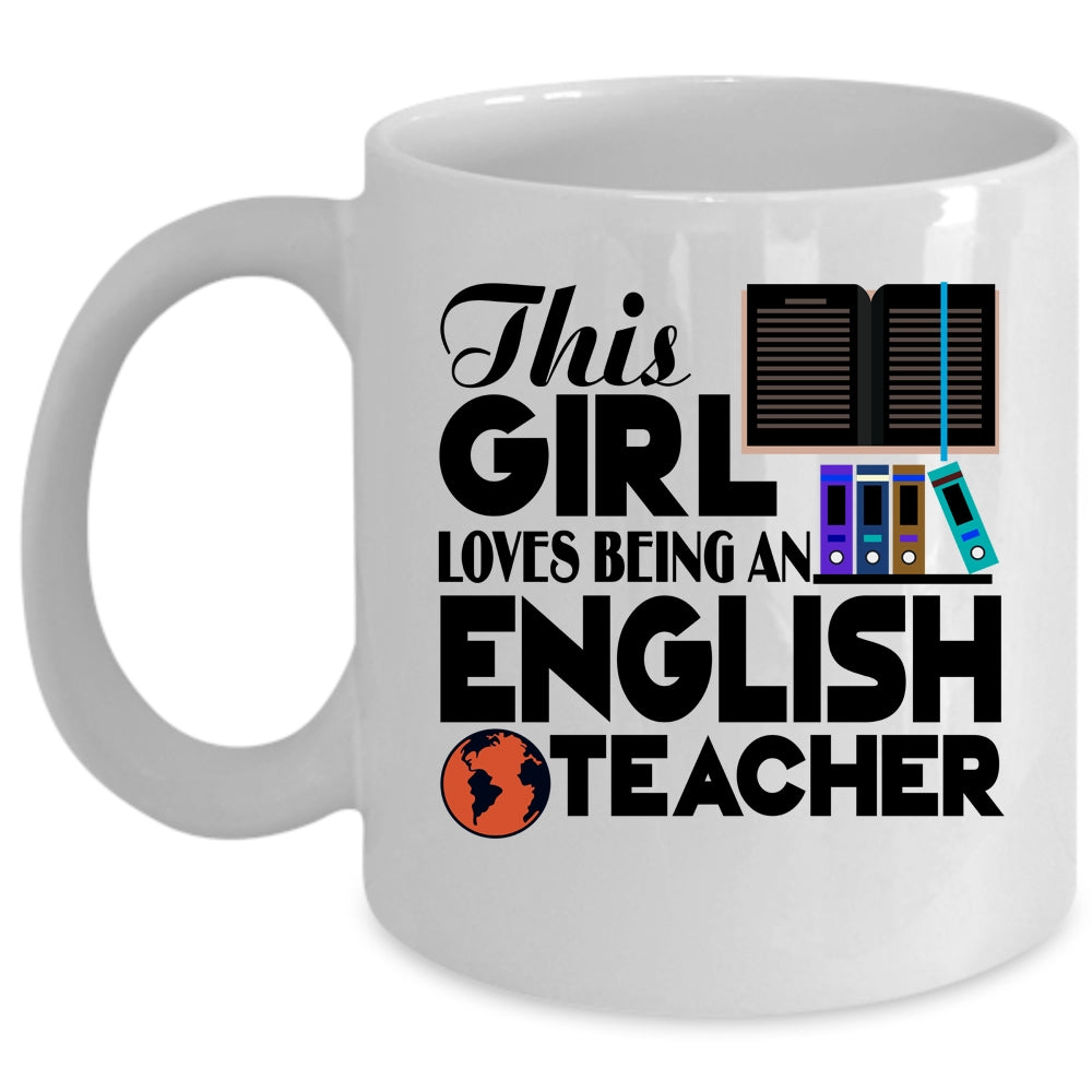 Cute English Teacher Coffee Mug, This Girl Loves Being An English Teacher Cup