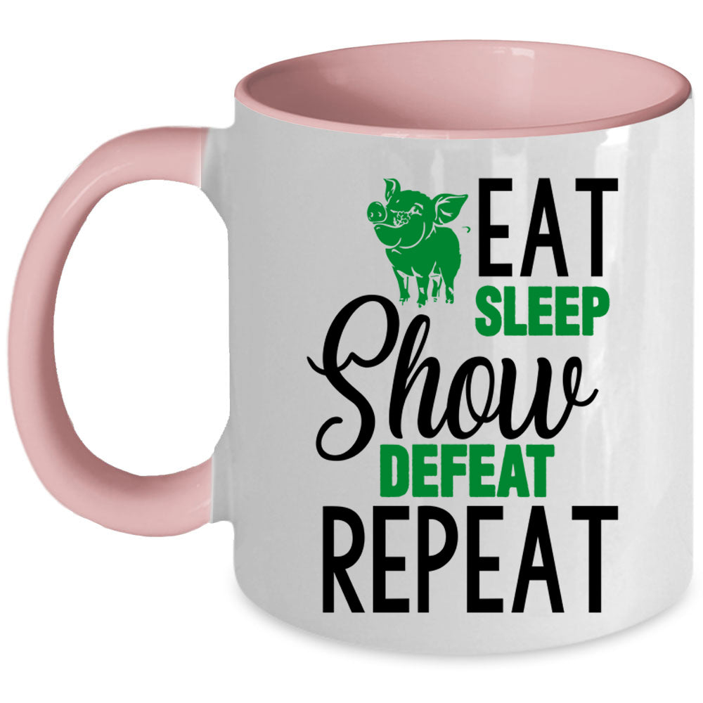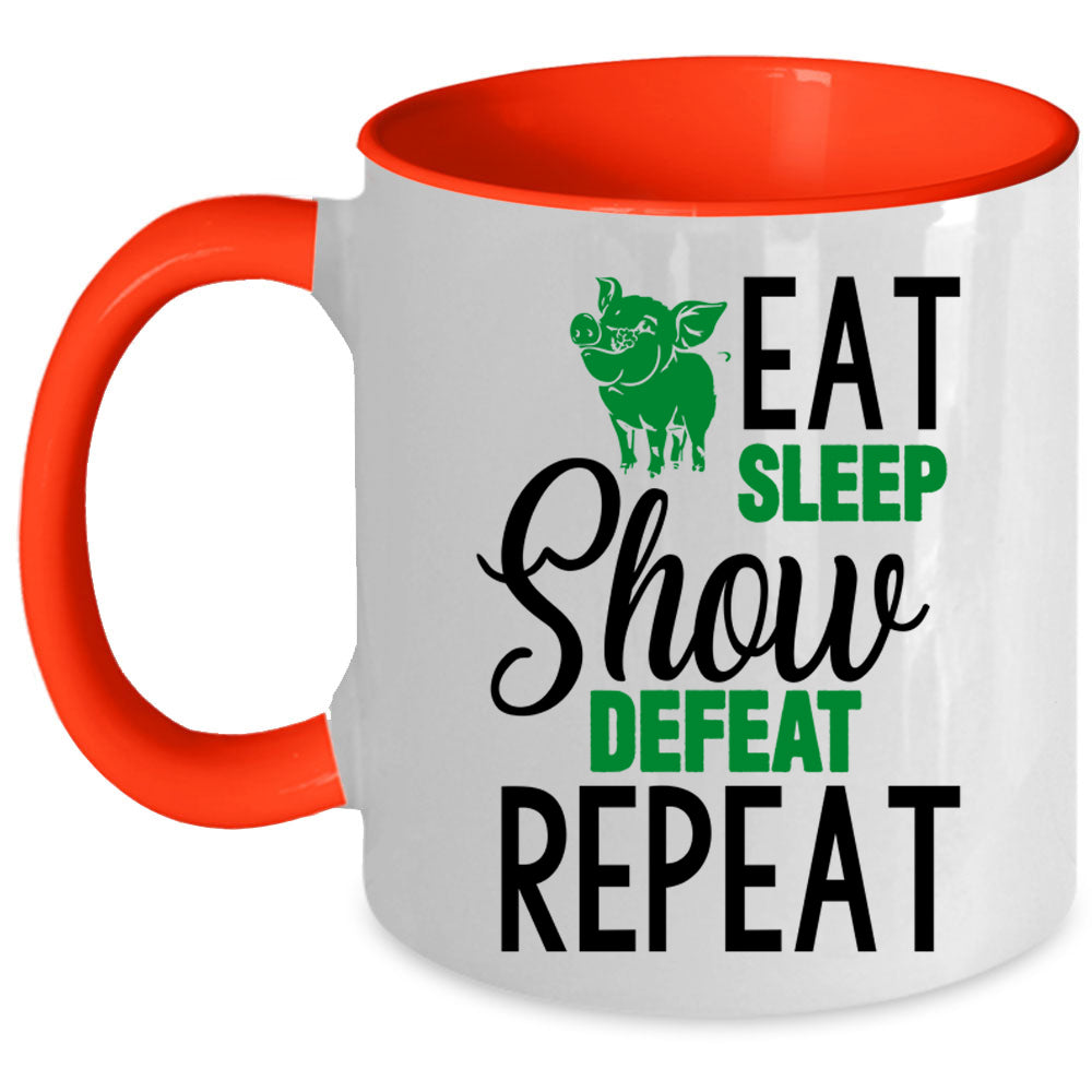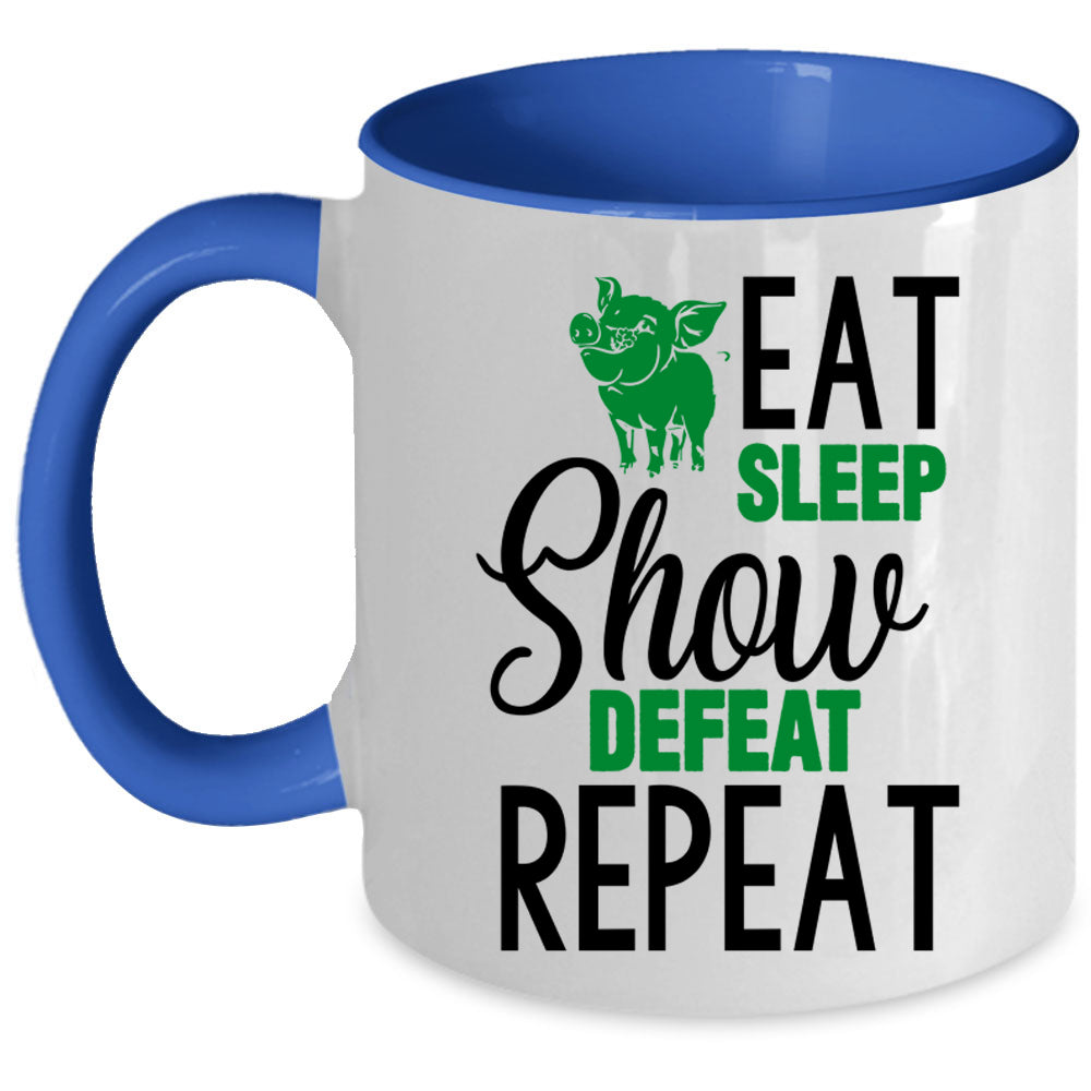 Cute Farmer Coffee Mug, Eat Sleep Show Defeat Accent Mug