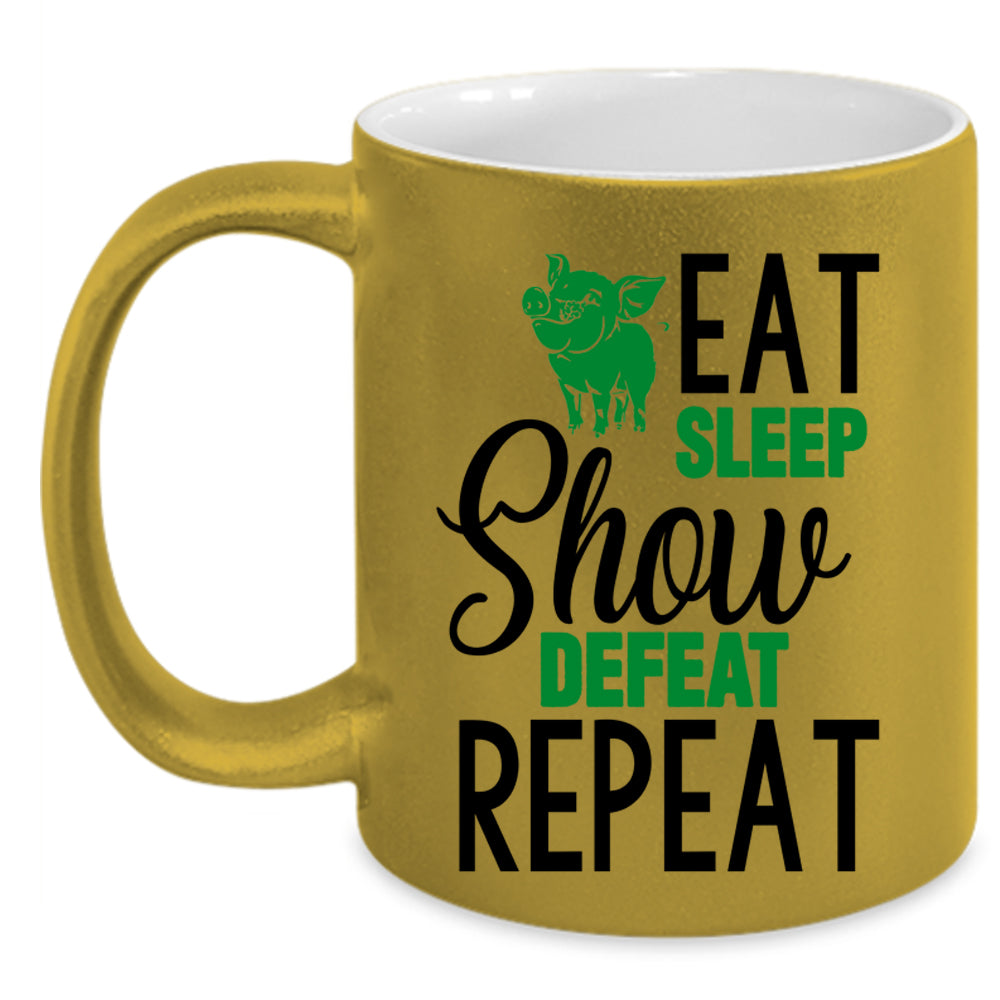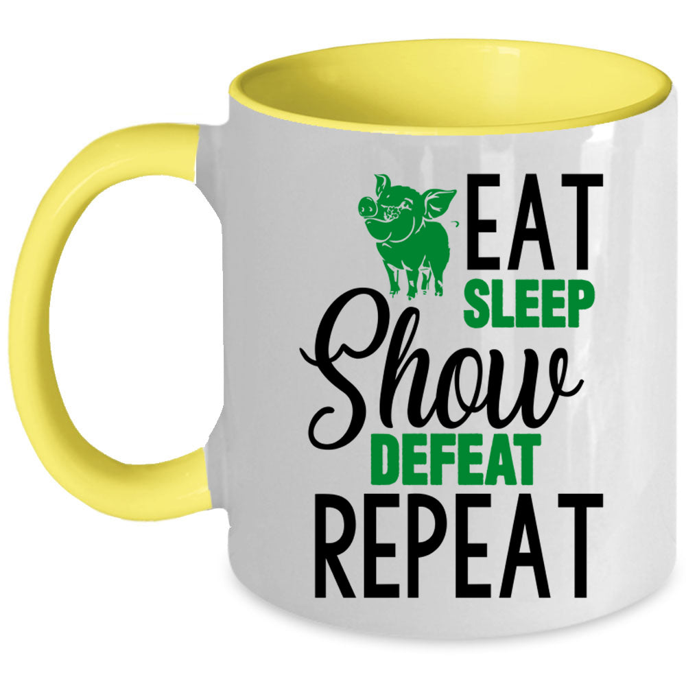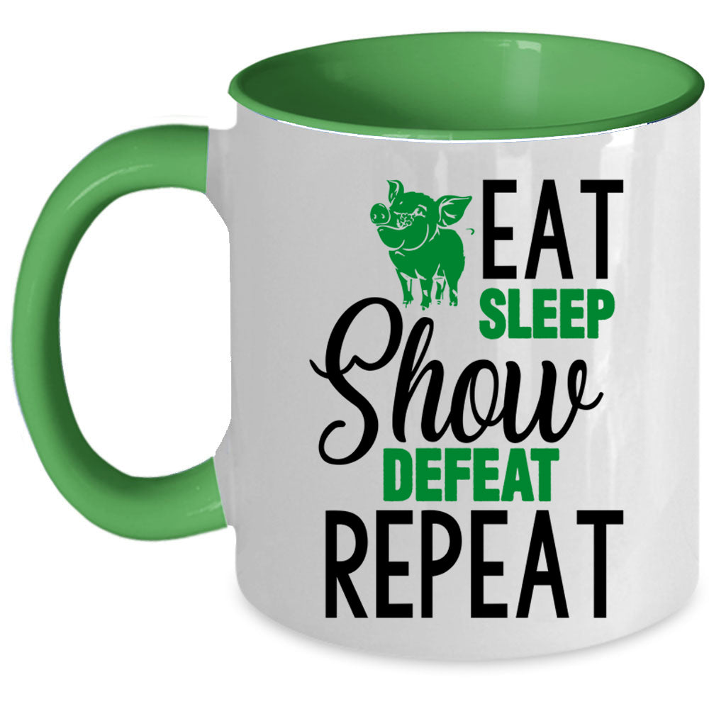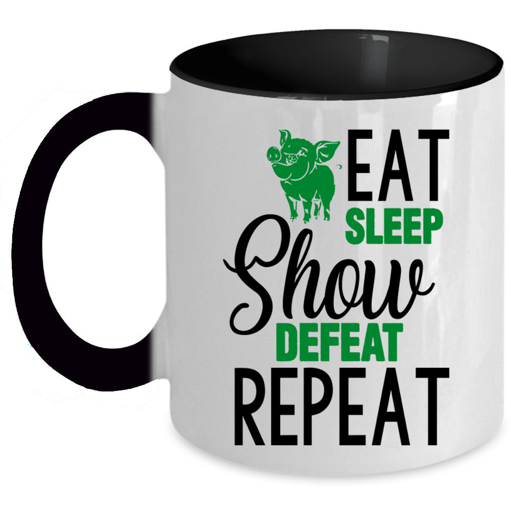 Cute Farmer Coffee Mug, Eat Sleep Show Defeat Accent Mug