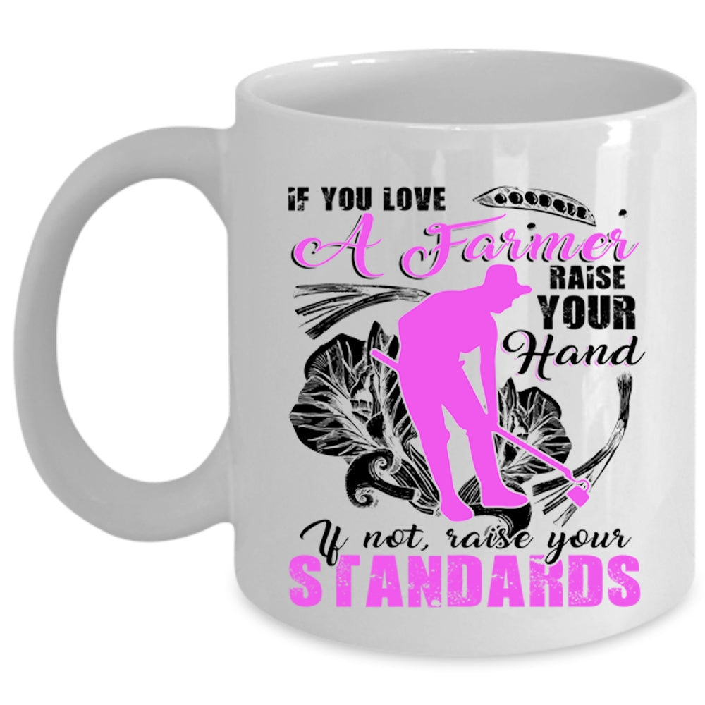 Cute Farmer Coffee Mug, If You Love A Farmer Raise Your Hand Cup