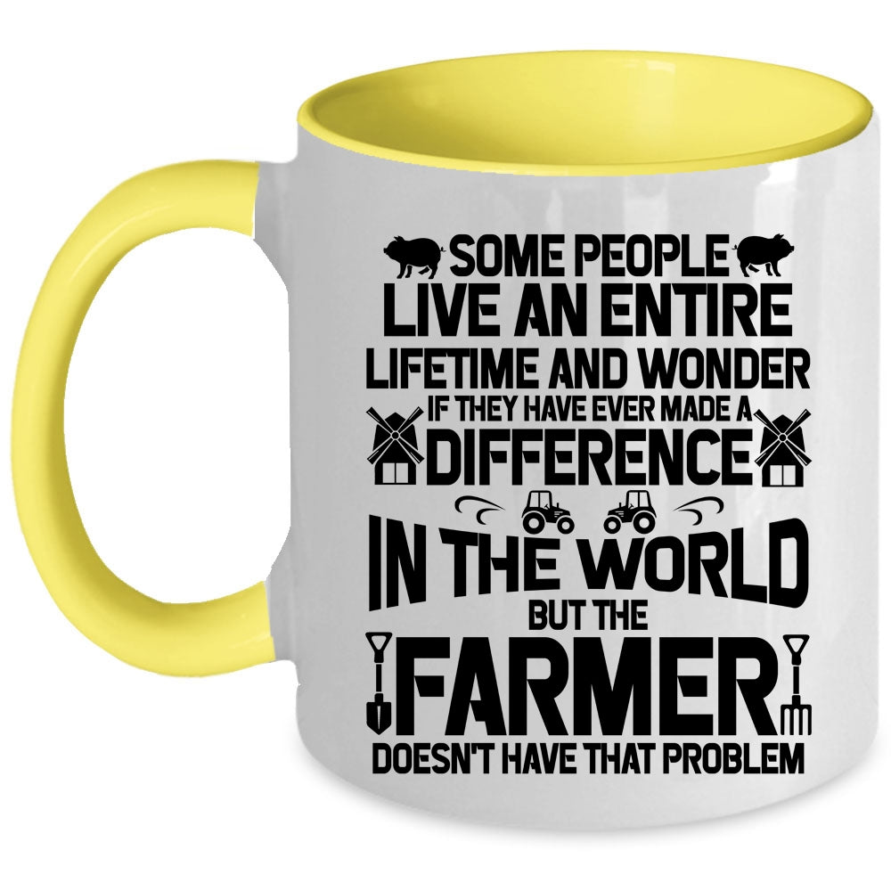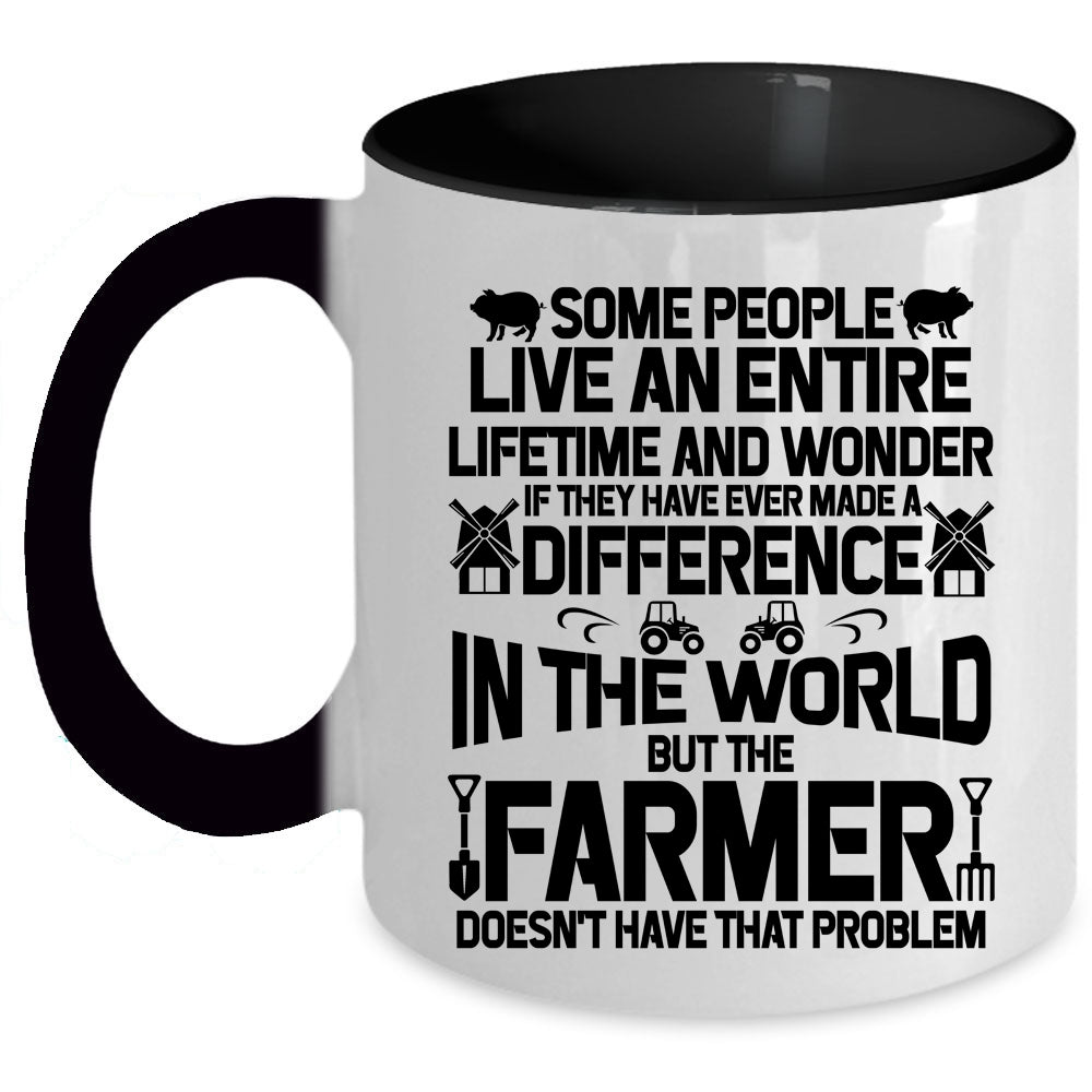Cute Farmer Coffee Mug, The Farmer Doesn't Have That Problem Accent Mug