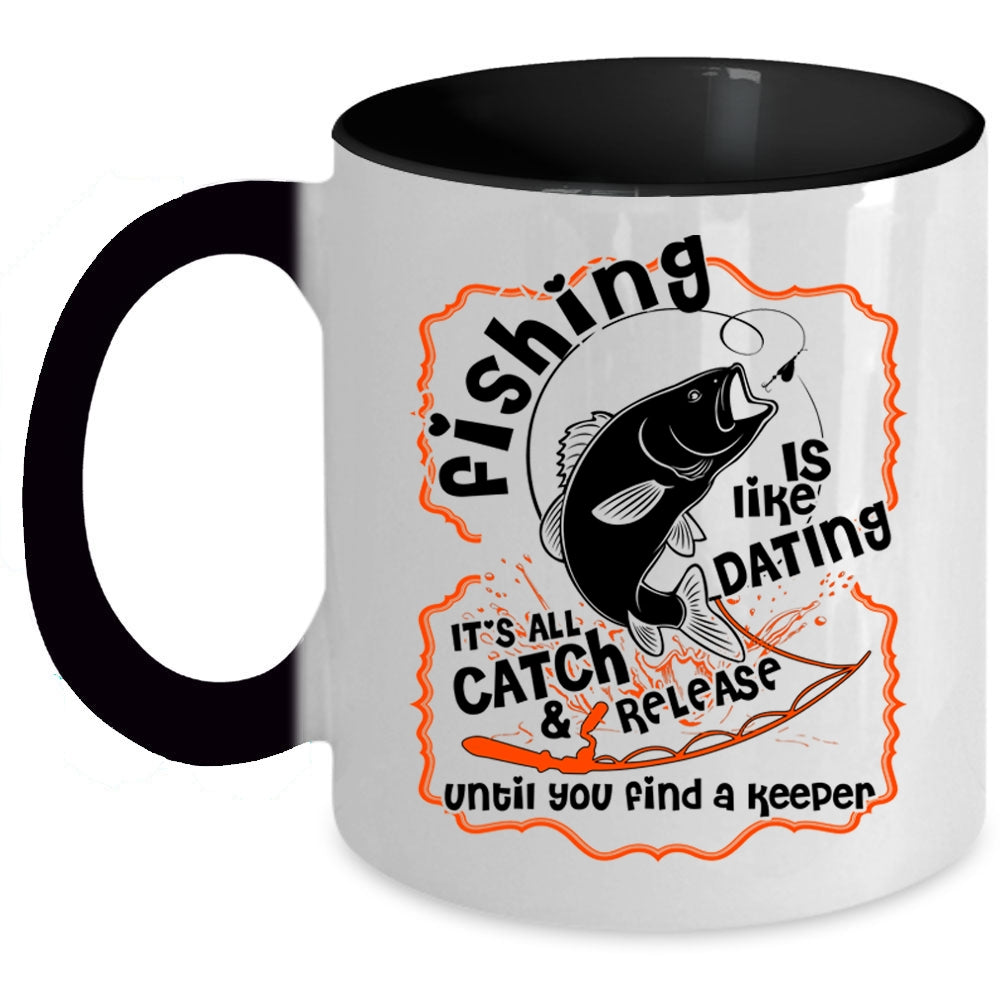 Cute Fisher Coffee Mug, Fishing Is Like Dating Accent Mug
