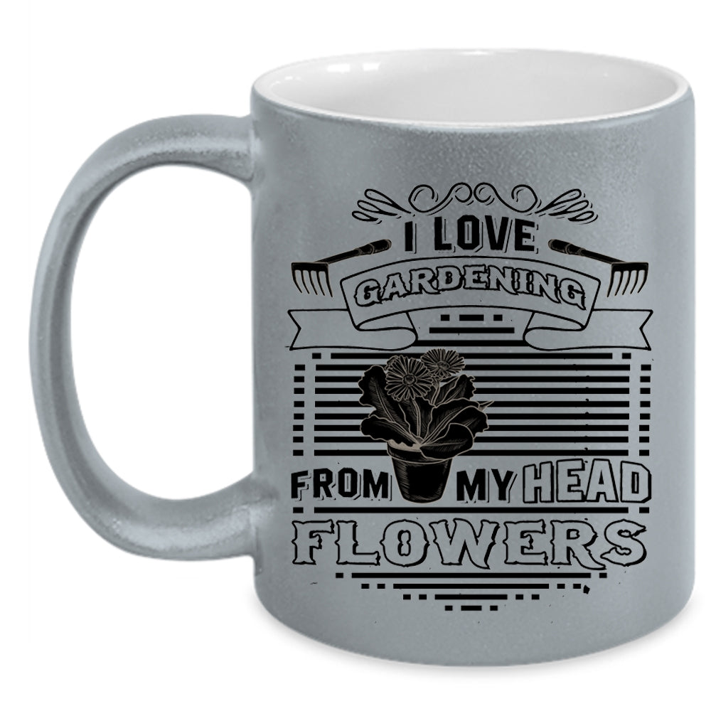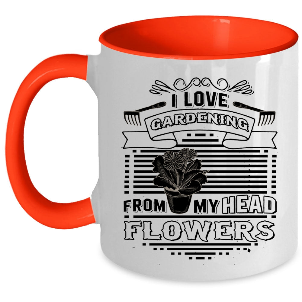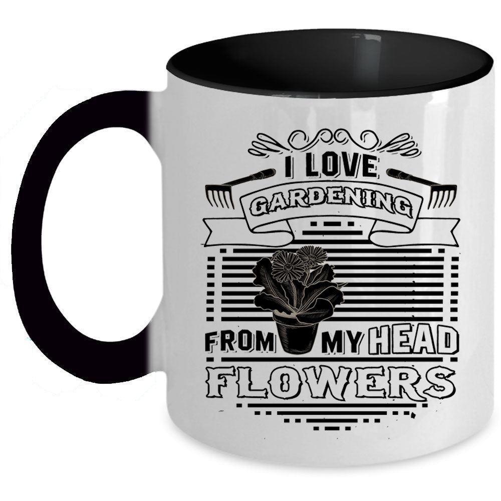Cute Gardener Coffee Mug, I Love Gardening From My Head Flowers Accent Mug