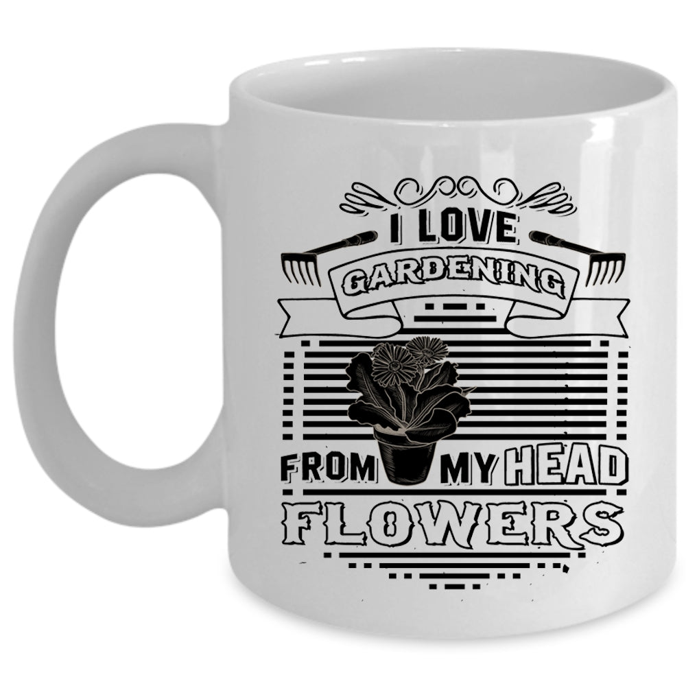 Cute Gardener Coffee Mug, I Love Gardening From My Head Flowers Cup