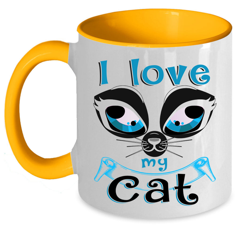 Cute Gift For Cat Lovers Coffee Mug, I Love My Cat Accent Mug